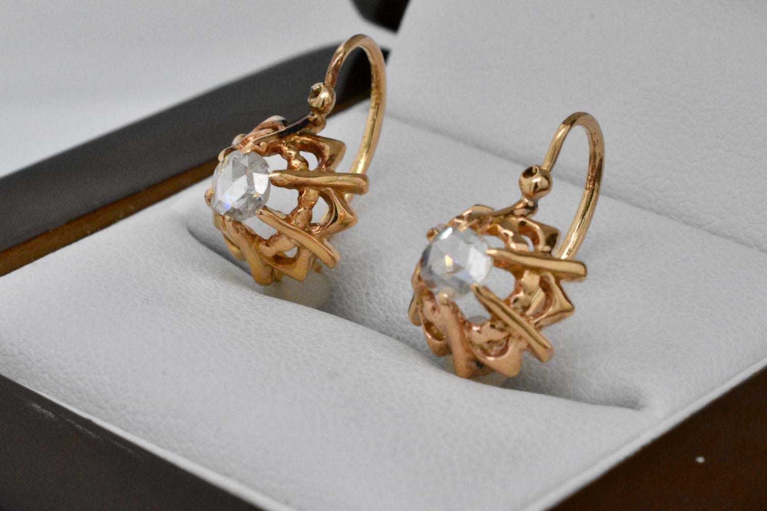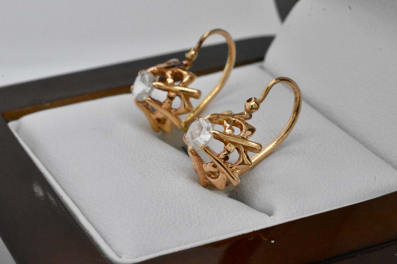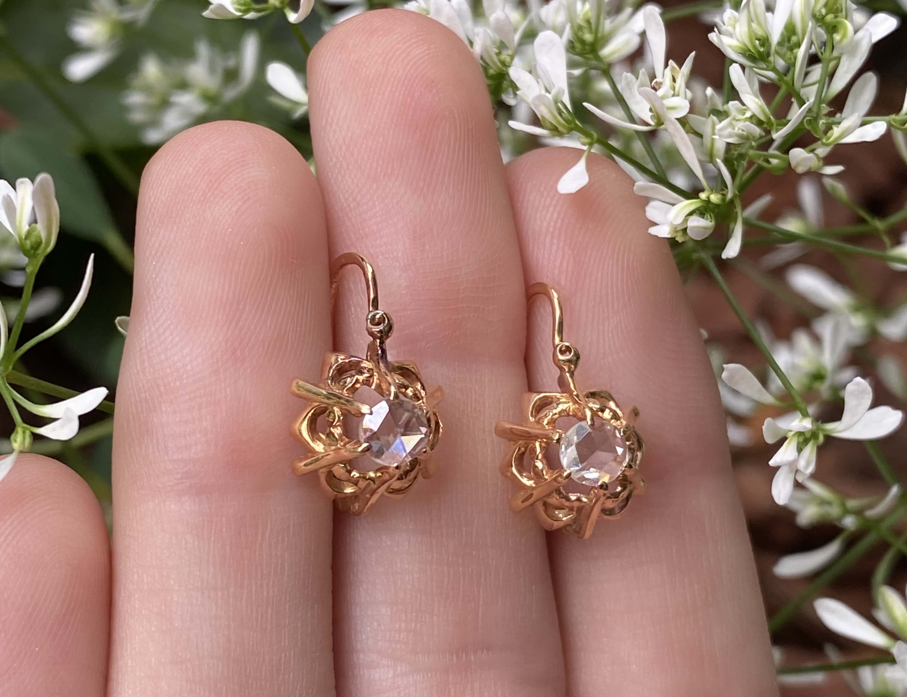 SOLD Antique 18ct Yellow Gold 0.34ct Rose Cut Diamond Earrings