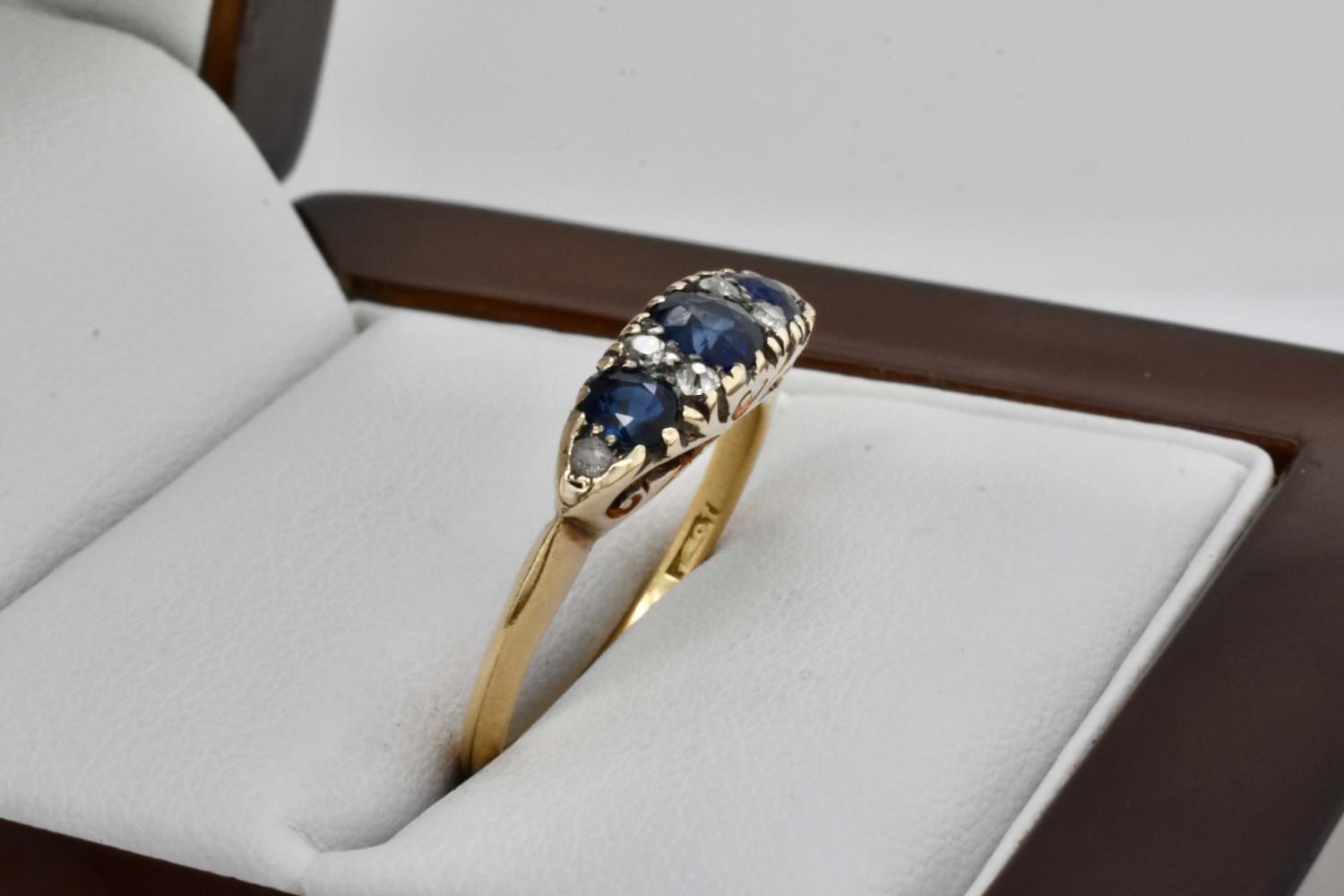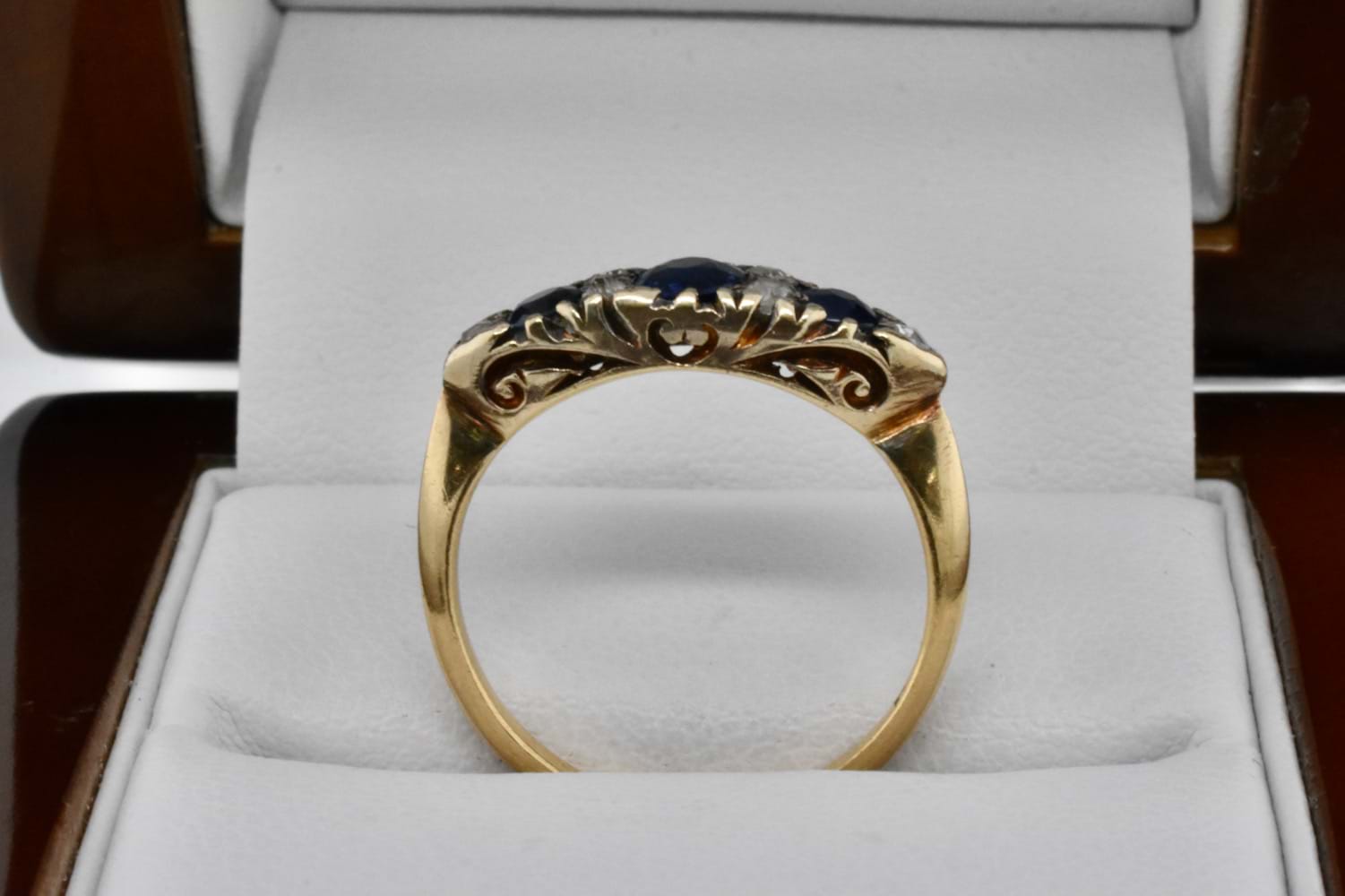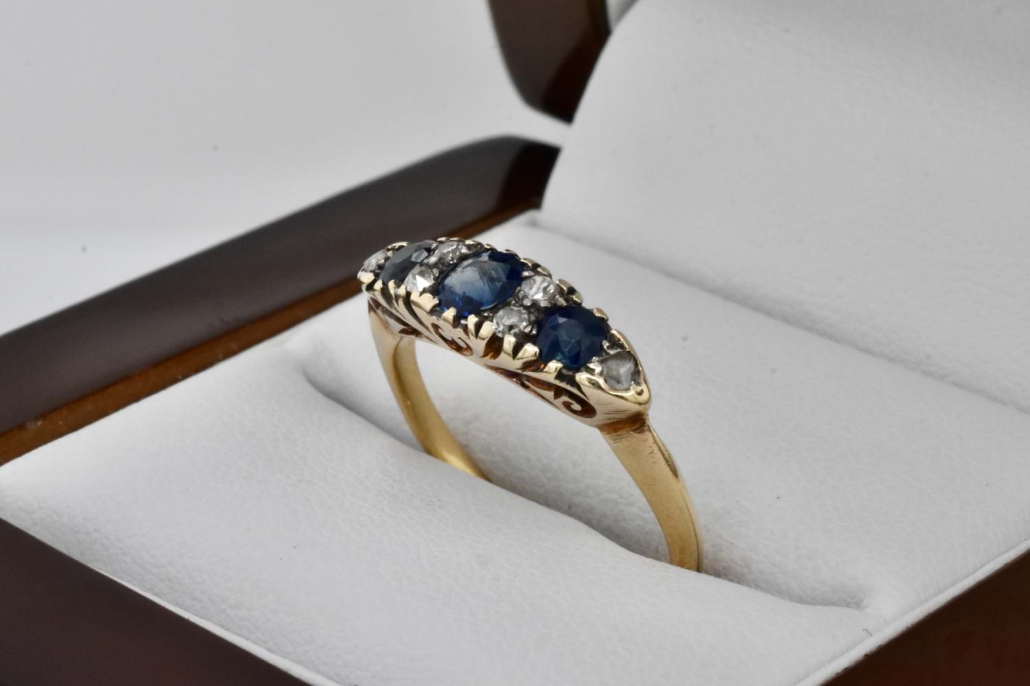 SOLD Antique 18ct Yellow Gold Sapphire & Diamond Bridge Ring C.1900