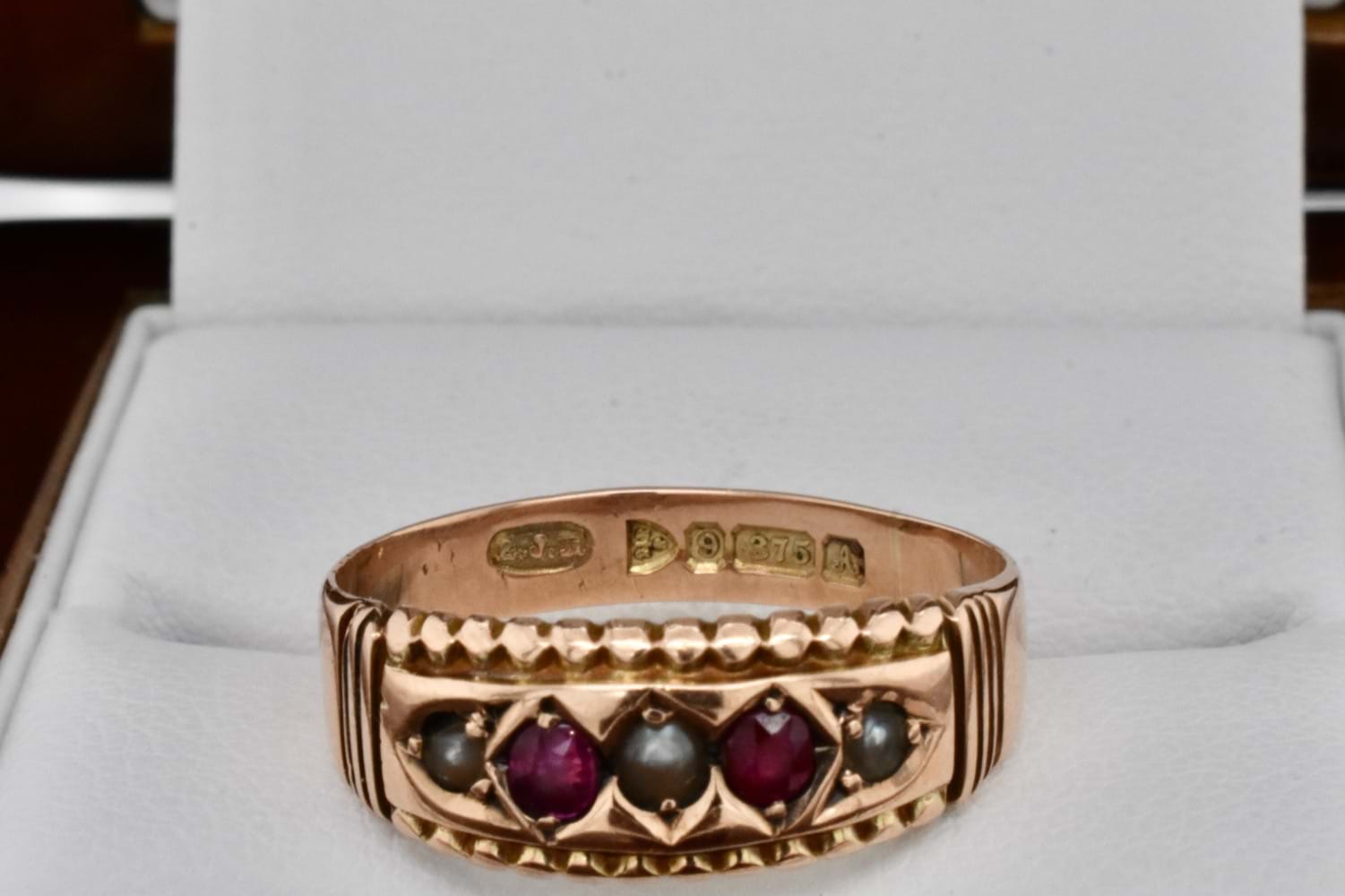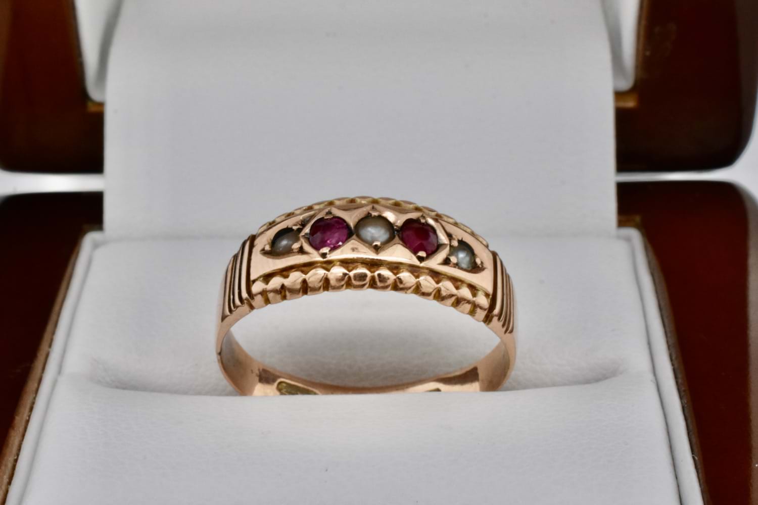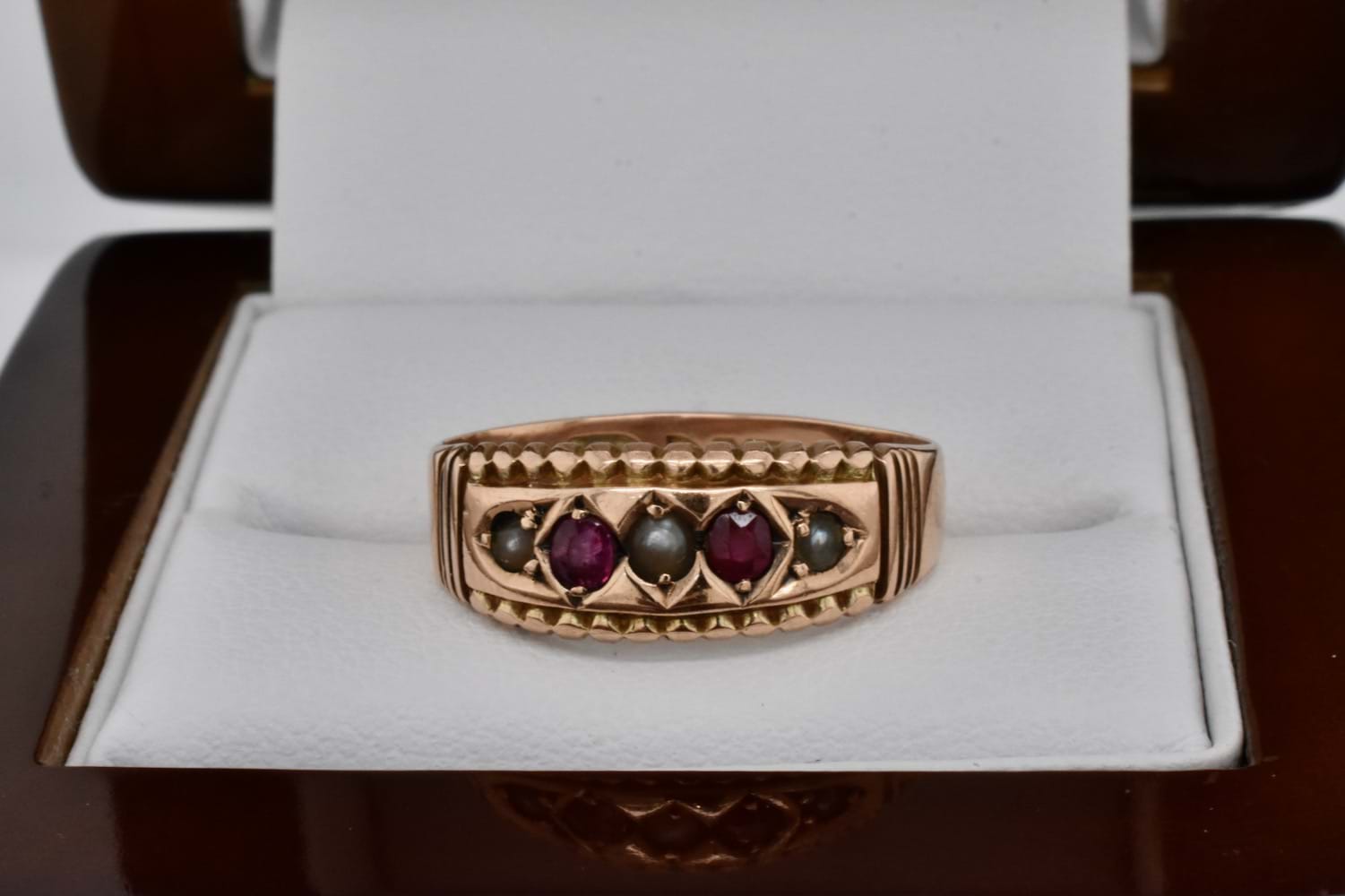 SOLD Antique 9ct Yellow Gold Garnet & Seed Pearl Ring