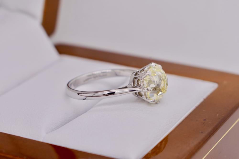 In the mid 1860's diamonds were discovered for the first time in the British Cape Colony (now South Africa), this was a pivotal discovery in our diamond history and as diamond production in Cape town and the Cape region progressed all diamonds originating from the Cape bore the name. Moving into the early 20th century the term cape moved from referencing origin to referencing the faint to light yellow colour of which diamonds from this region generally exhibited. Over the years cape became a recognized term for diamonds with a distinguished yellow colour, and though the GIA now has more definitive terminology (O/P in this case) the word Cape remains a valid description particularly when referencing antique diamonds of this old world time.