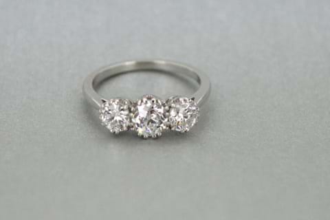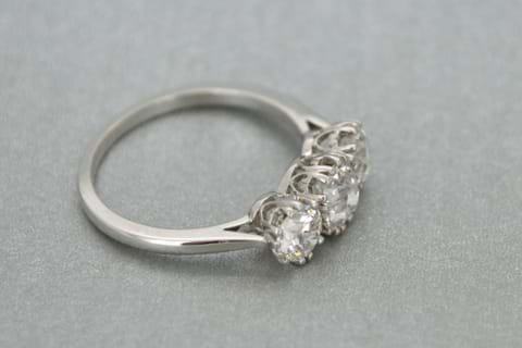 This beautiful antique ring is crafted in 18ct white gold and features three sparkling diamonds claw set. With two old European cut diamonds totaling 0.86cts, one on each side of a 0.72ct round brilliant cut diamond. This timeless ring makes a fabulous engagement or anniversary piece. Independent Valuation Supplied