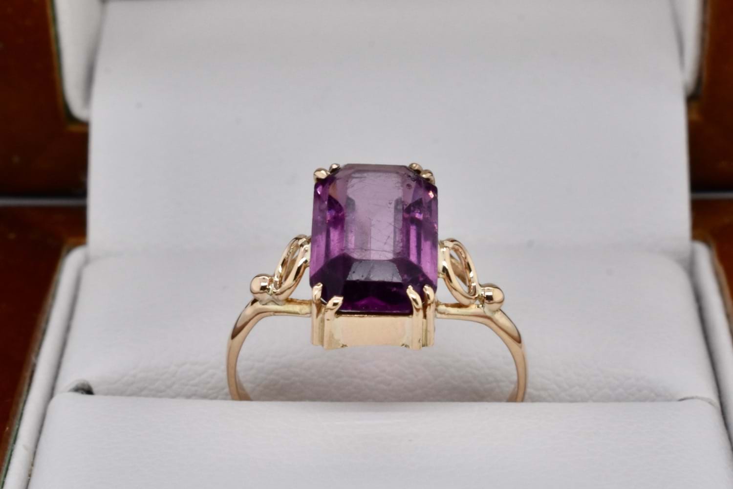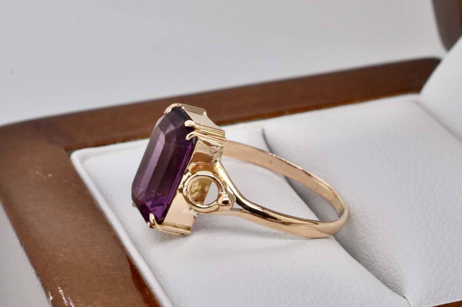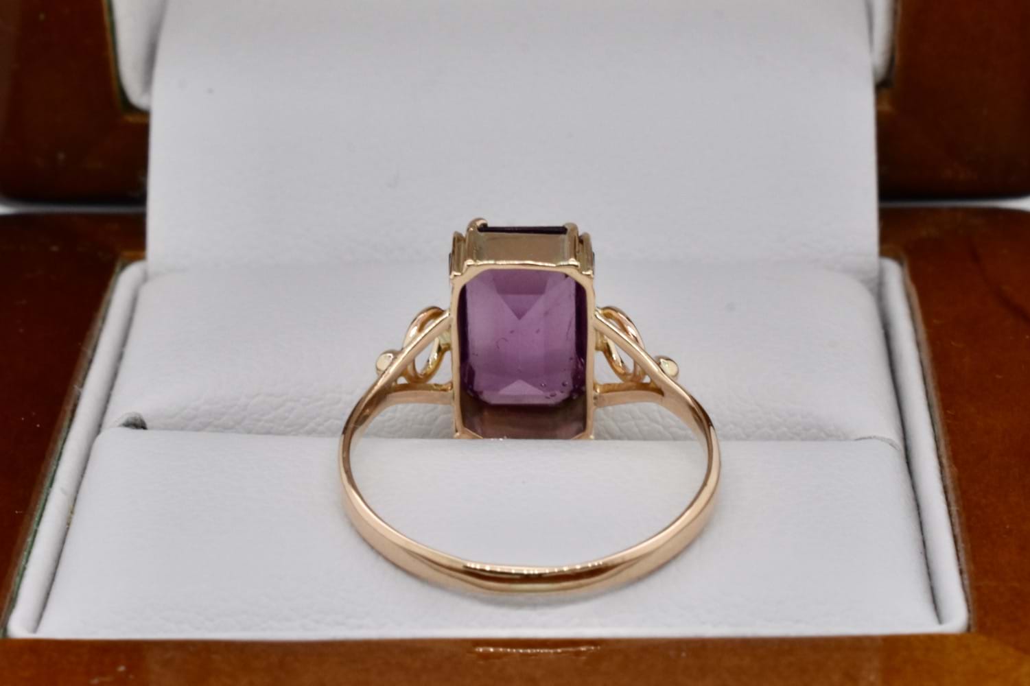 SOLD Vintage 9ct Yellow Gold 11 x 7mm Emerald Cut Amethyst Ring (L)