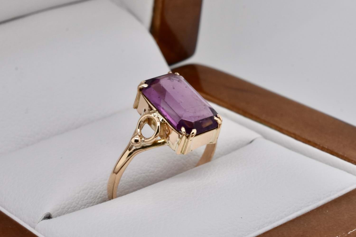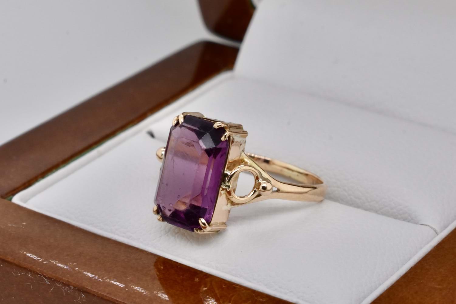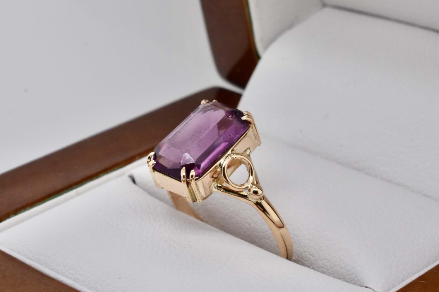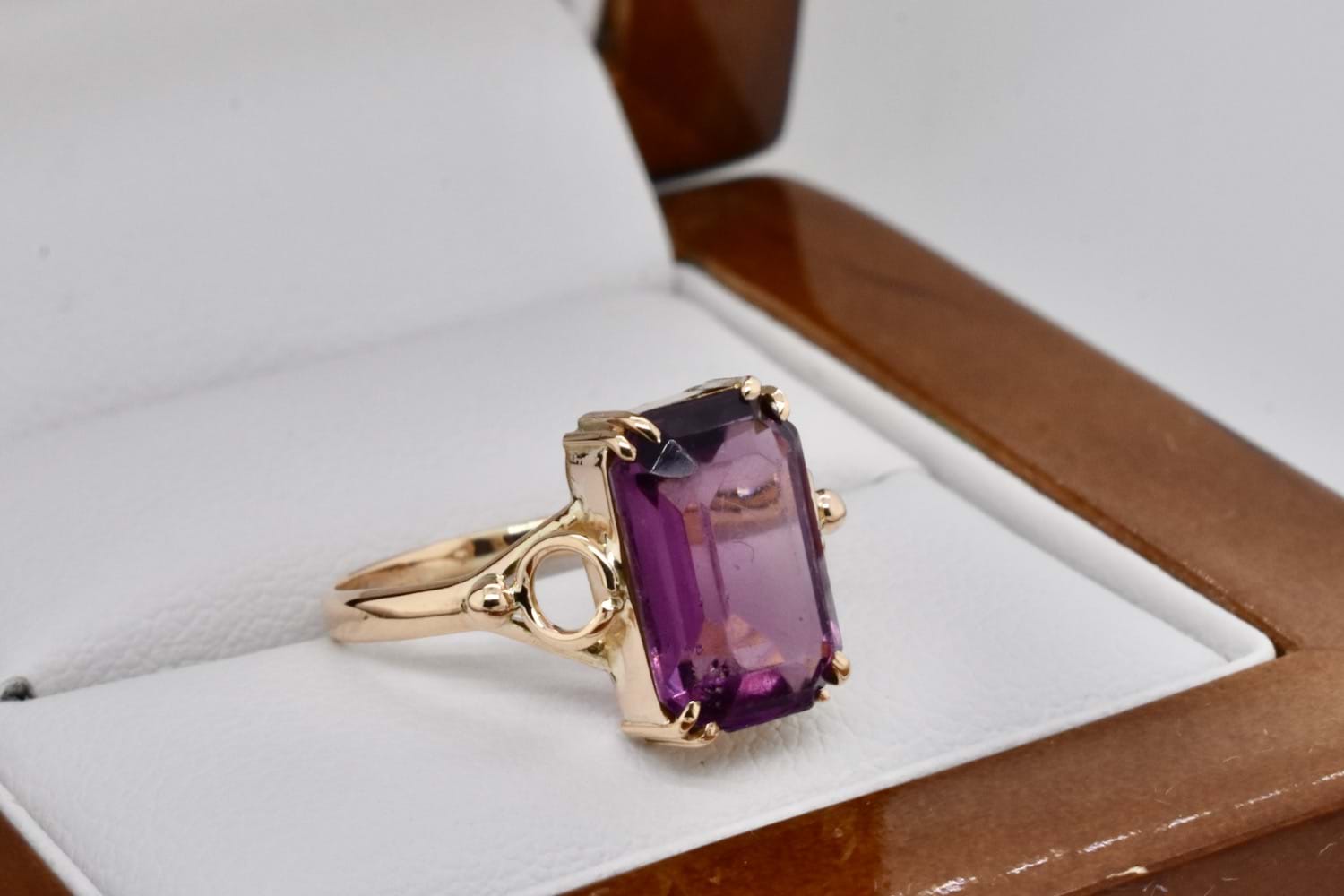 SOLD Vintage 9ct Yellow Gold 11 x 7mm Emerald Cut Amethyst Ring (L)