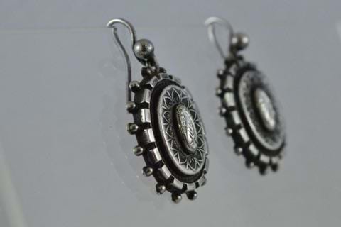 These beautiful sterling silver drop earrings date back to the Victorian era and feature intricate detailing and oxidisation.