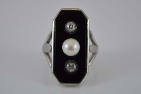 SOLD French 18ct Antique Onyx, Diamond & Pearl Ring