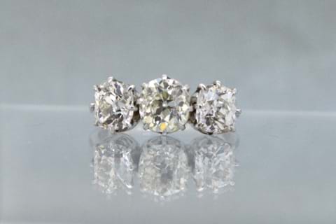 SOLD Platinum Antique 3.81ct Diamond Trilogy Ring