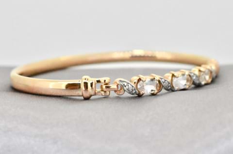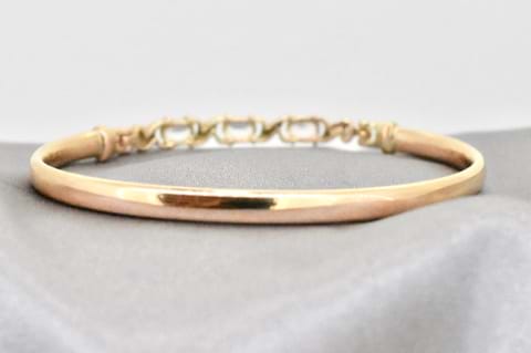 In keeping with the current trend of peach and blush tones this opening 9ct rose gold bangle features three oval morganites claw set across the opening panel. The three beautiful morganites have been complimented by a swirl of white gold and total 1.20cts. Independent Valuation Supplied