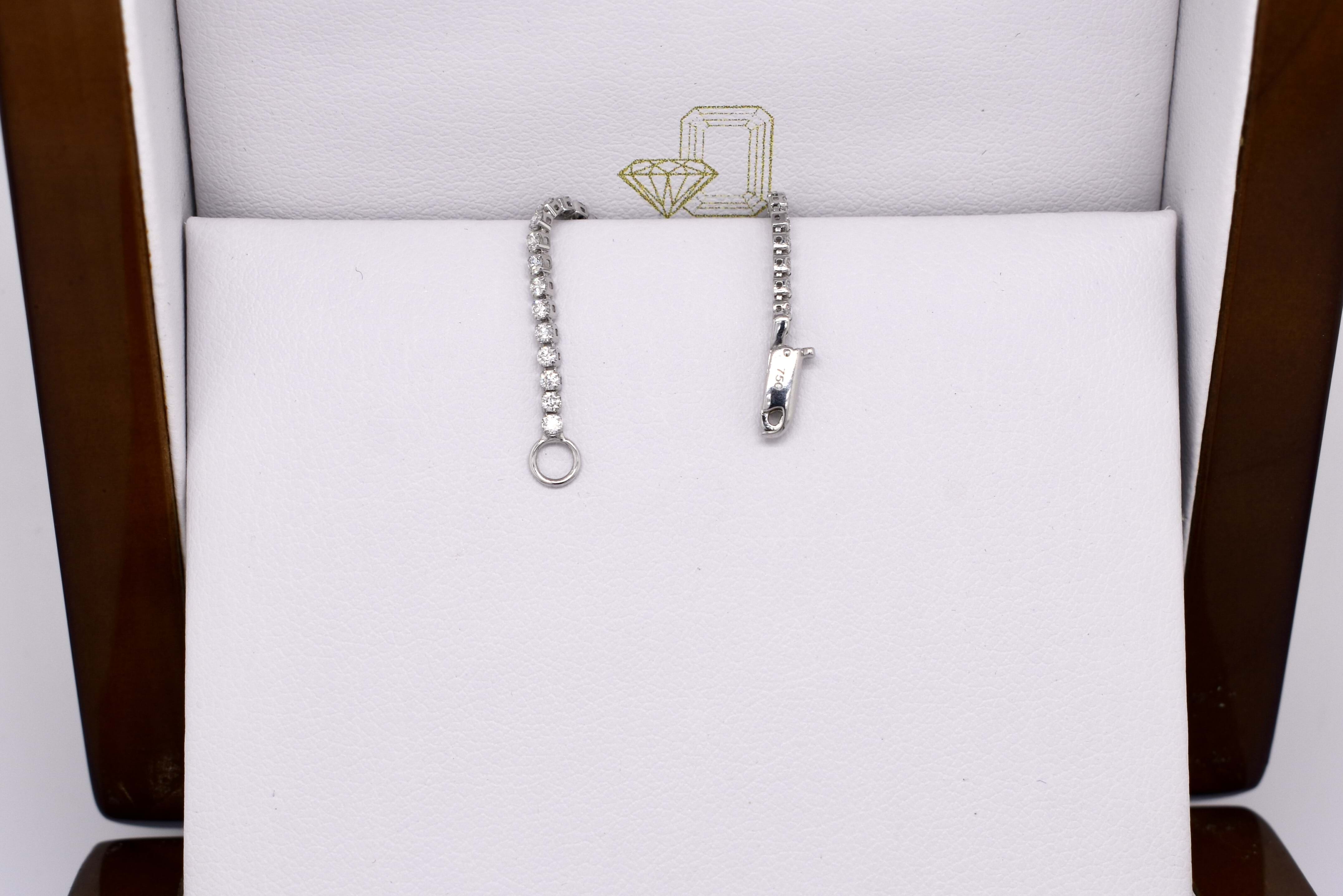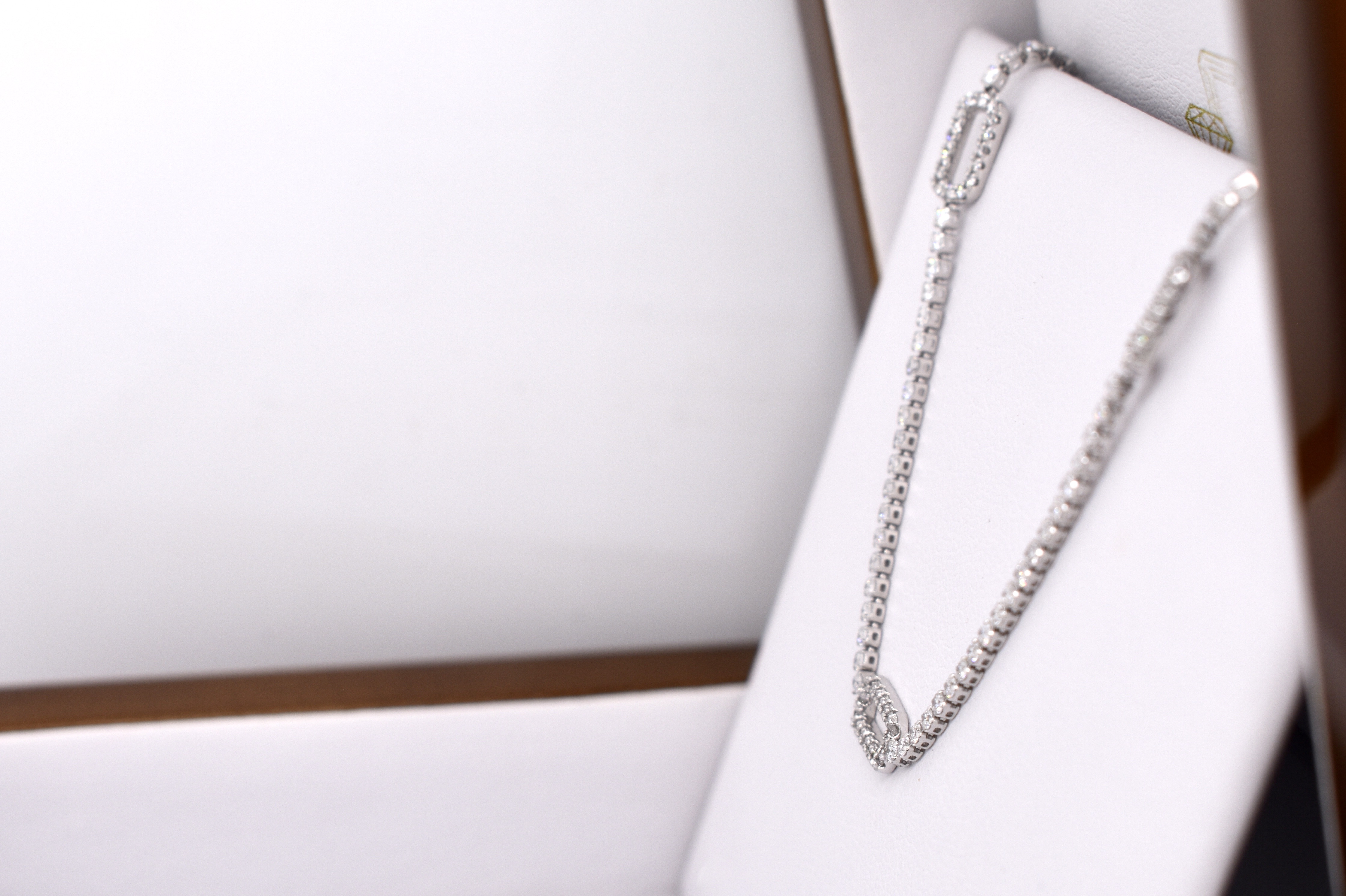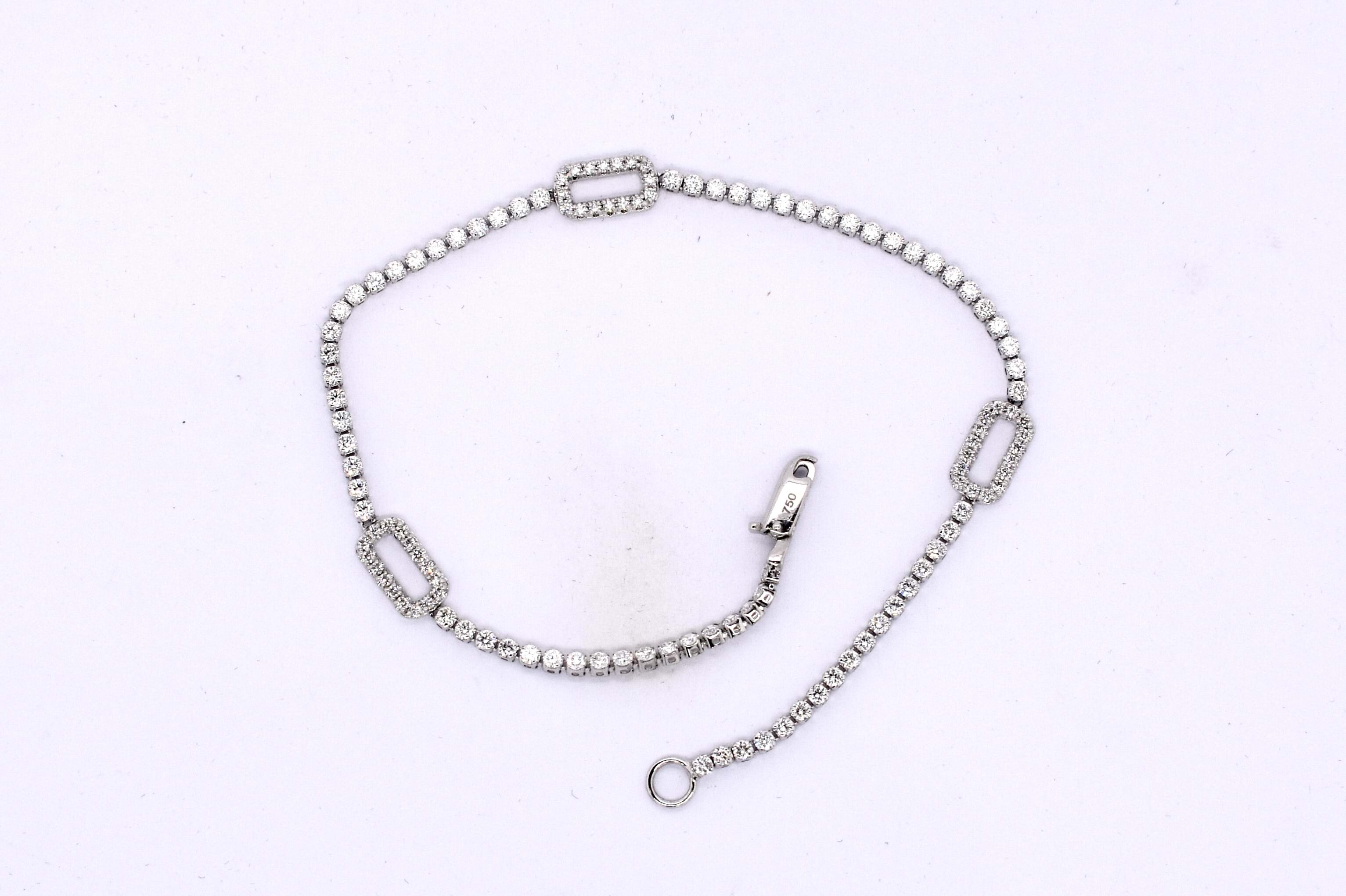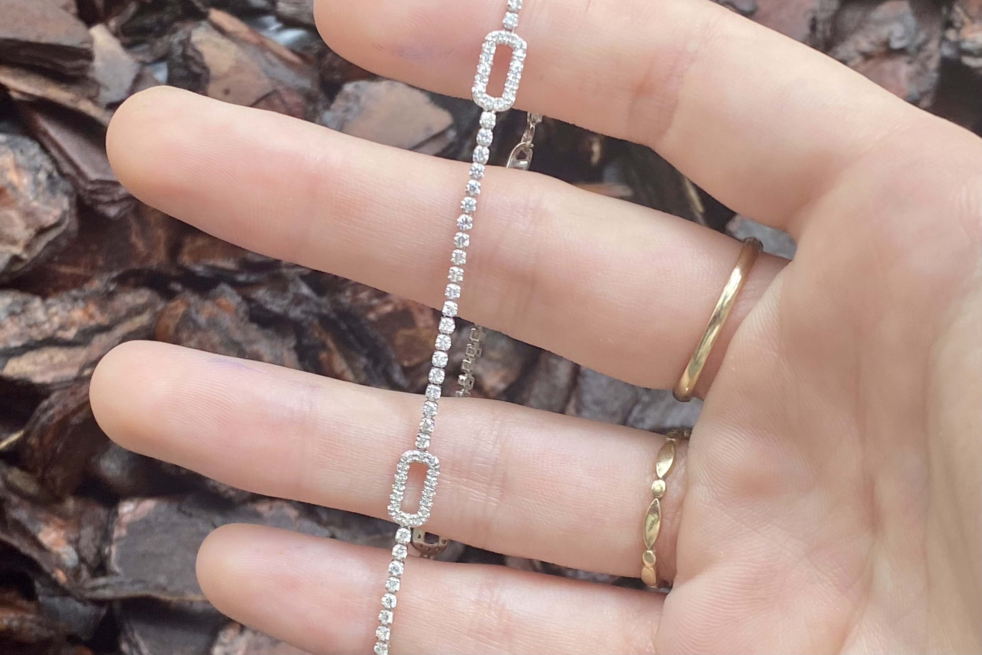 Pretty and shiny, this 18ct white gold stationed oval 'paperclip' link tennis bracelet features 122 round brilliant cut diamonds, totalling 1.20ct G SI1. Measuring 17cm long, this bracelet is completed with a lobster claw clasp. Independent Valuation available upon purchase.