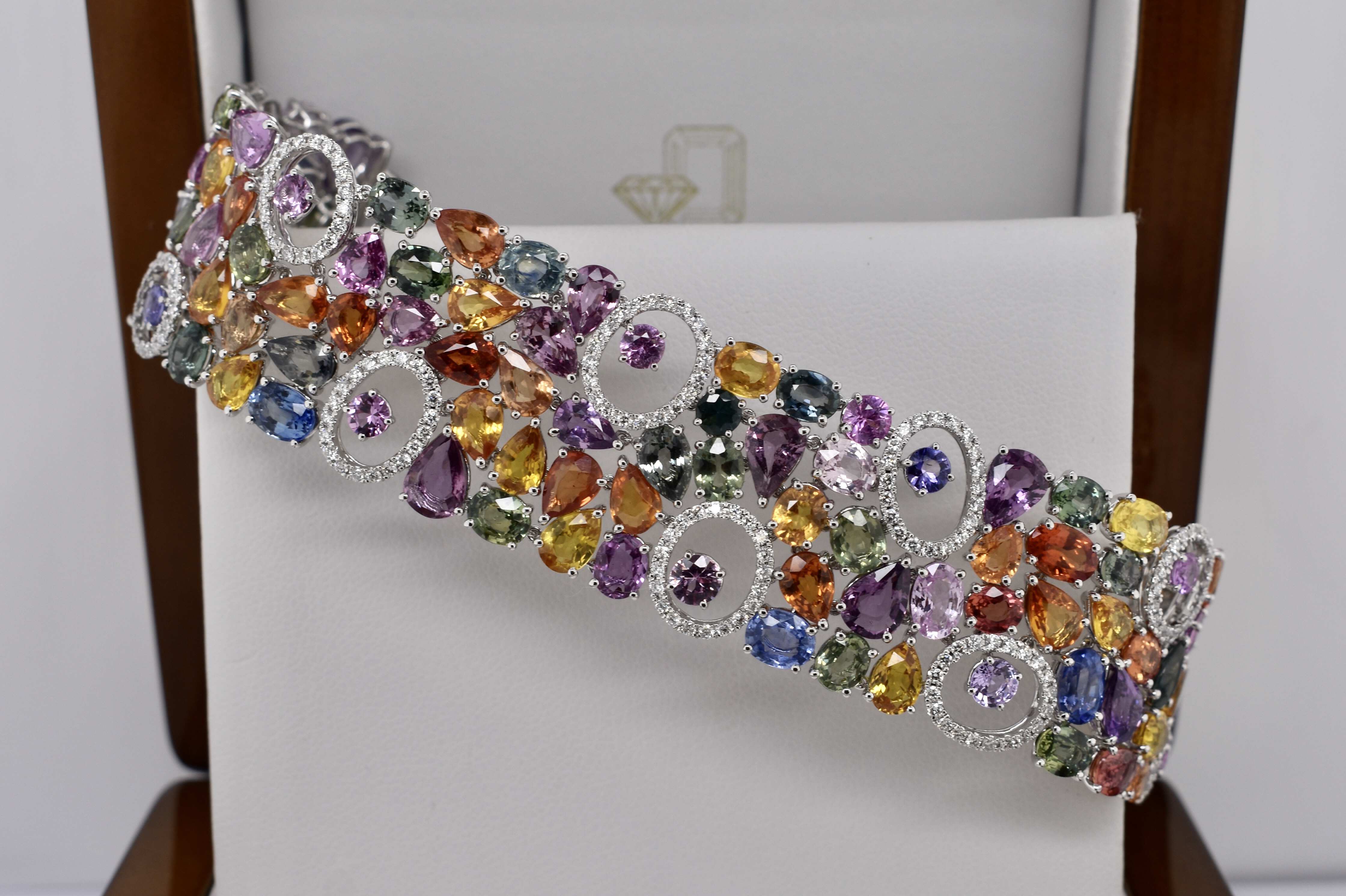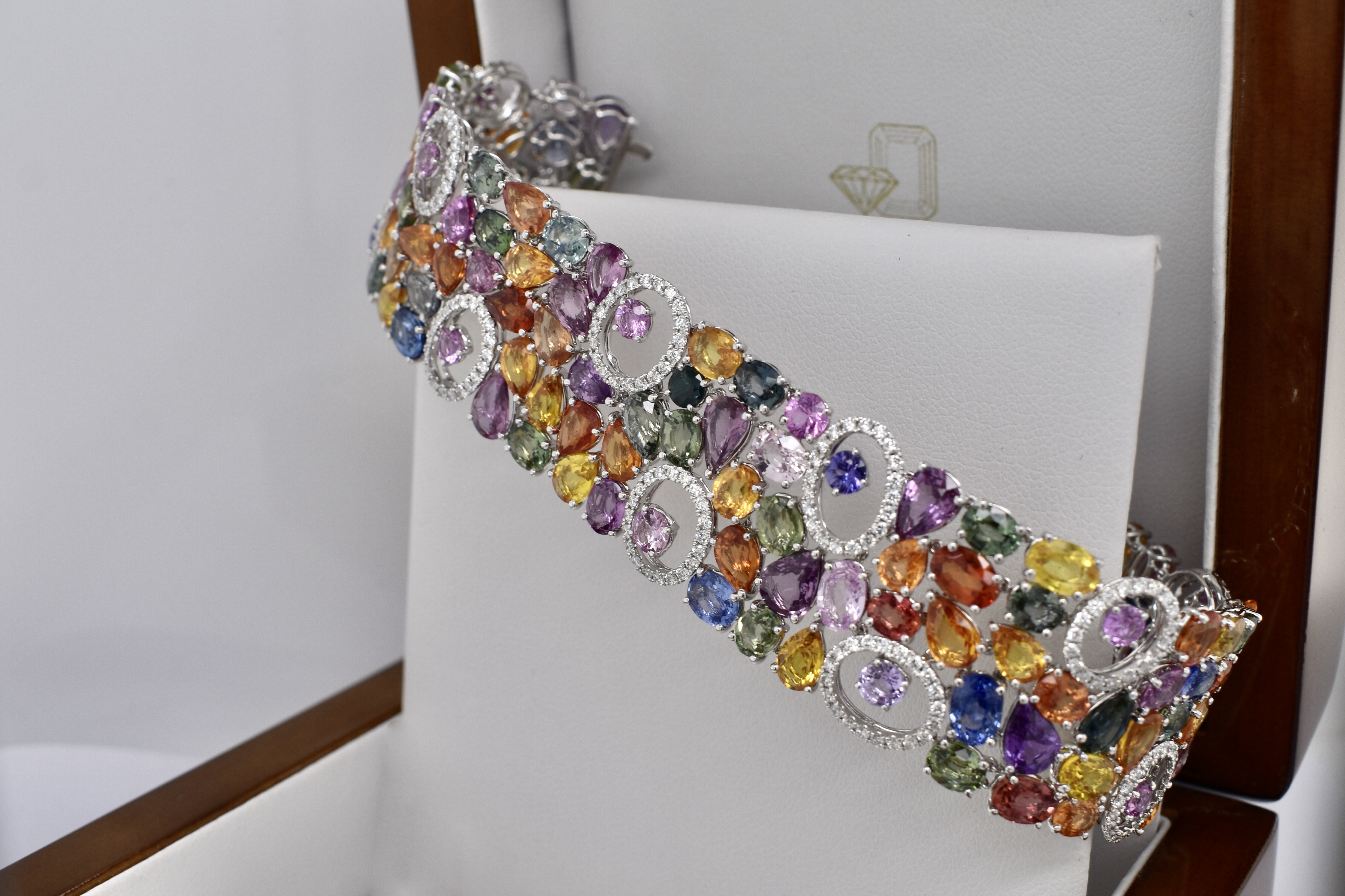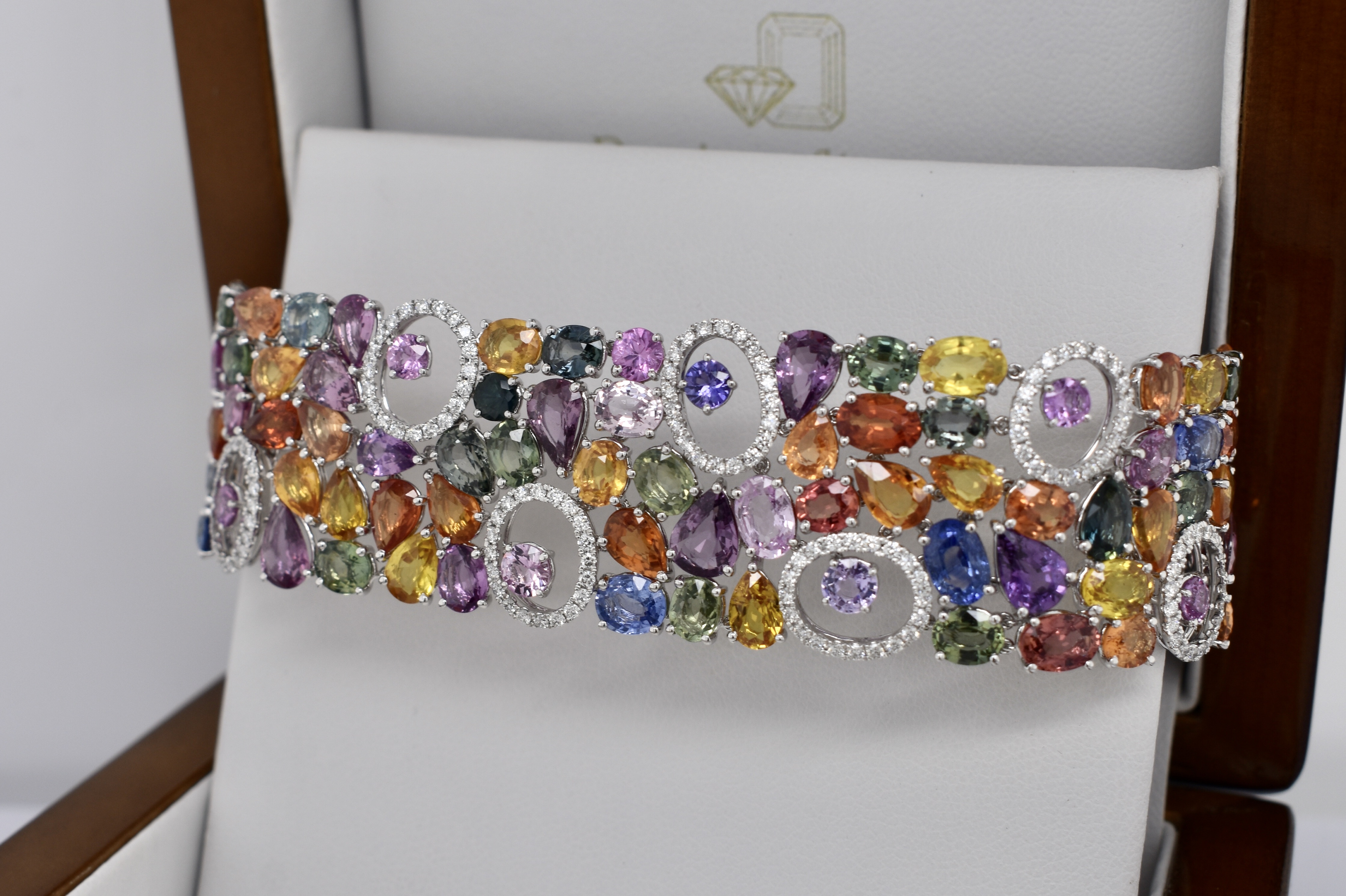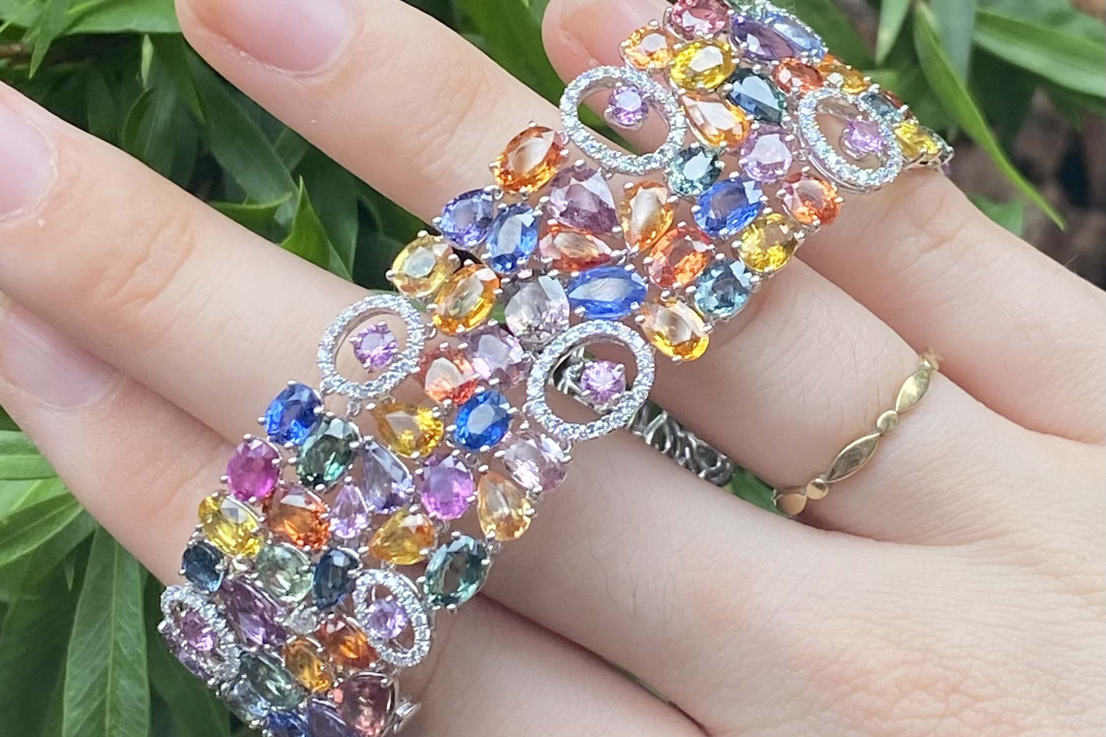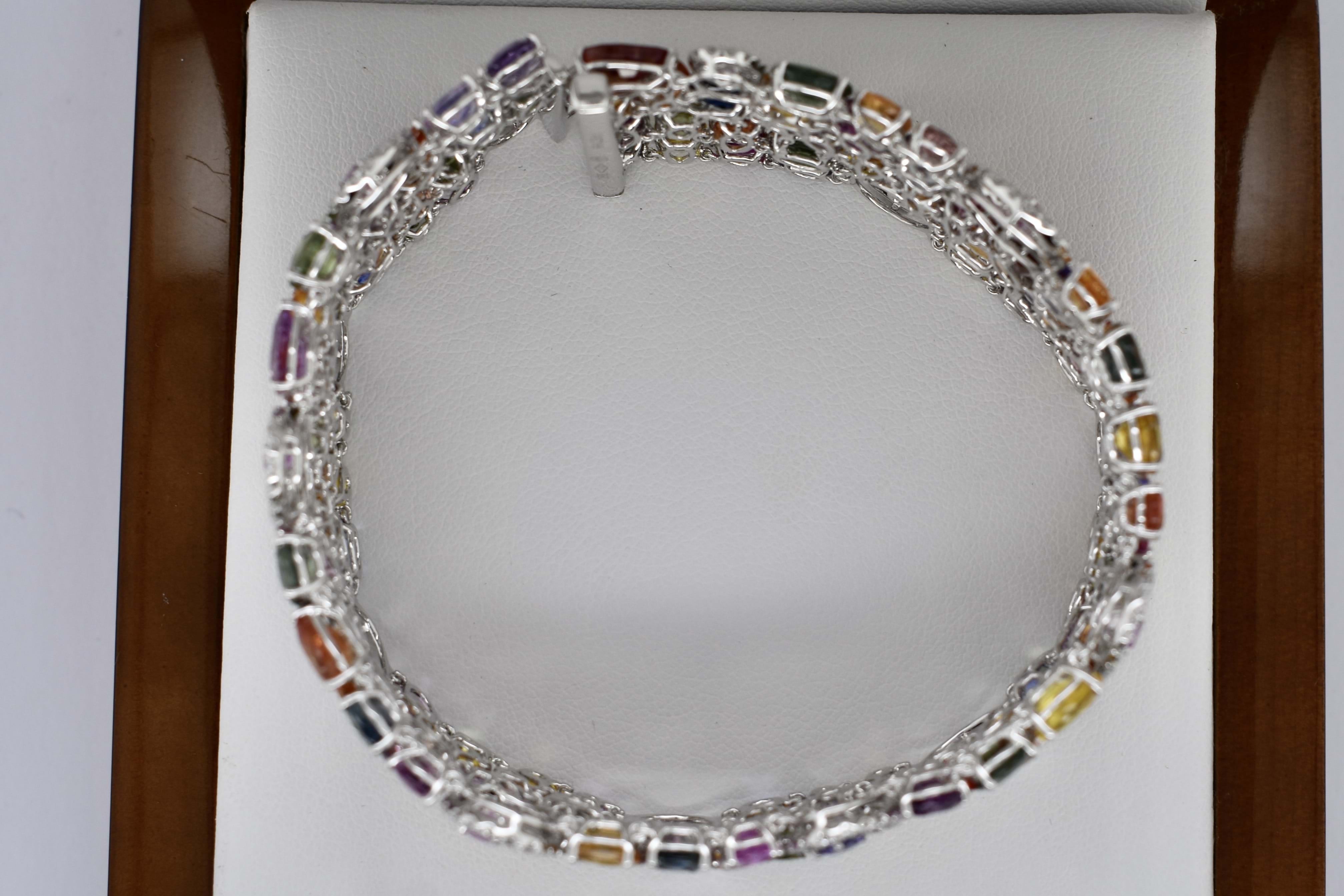 SOLD 18ct White Gold 64.28ct Multi Coloured Sapphire & 1.83ct Diamond 17.5cm Bracelet