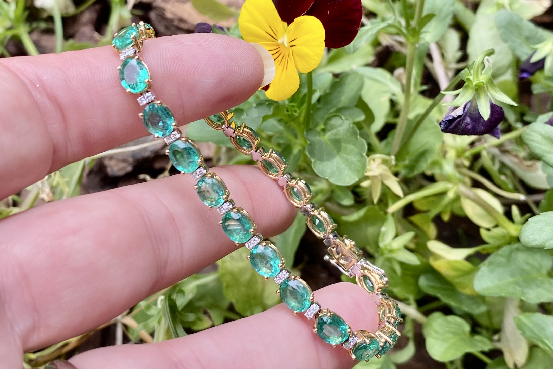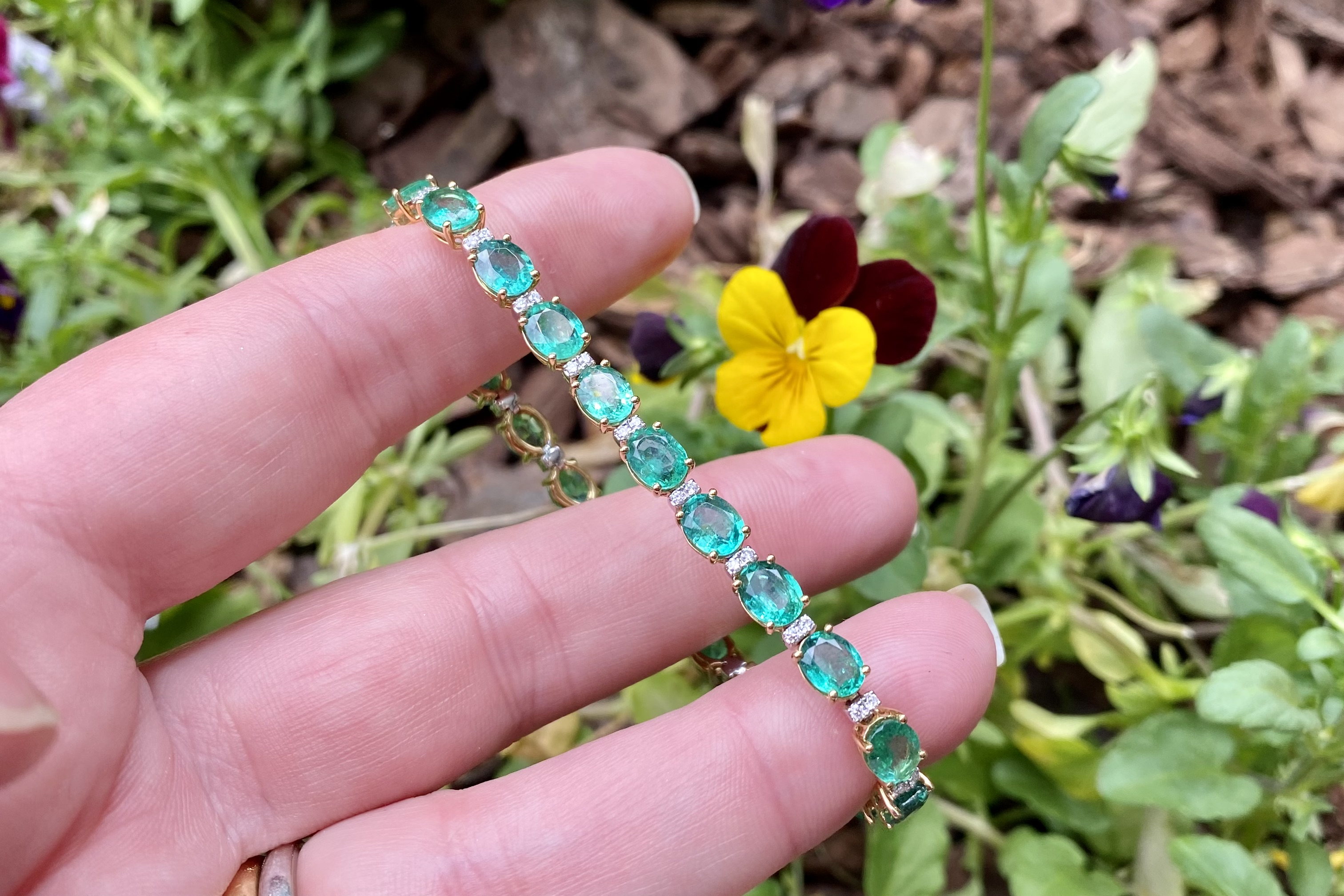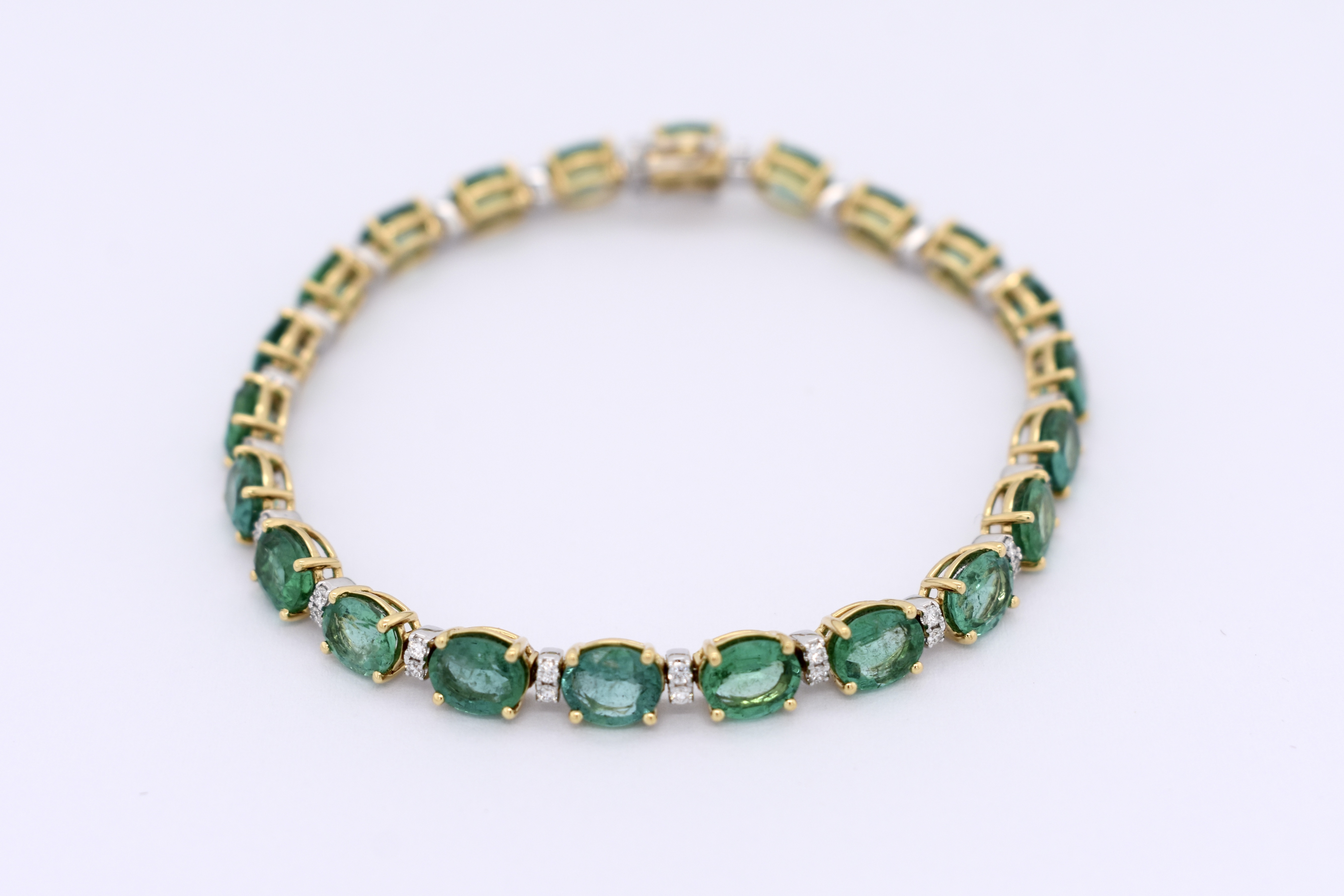 SOLD 18ct Yellow Gold 12.24ct Oval Emerald & 0.41ct Diamond 18.5cm Bracelet