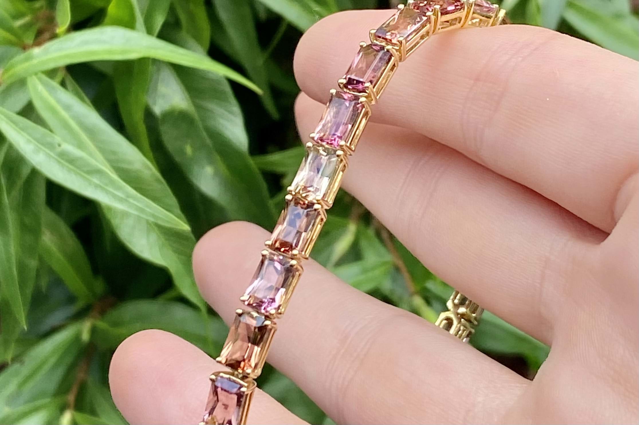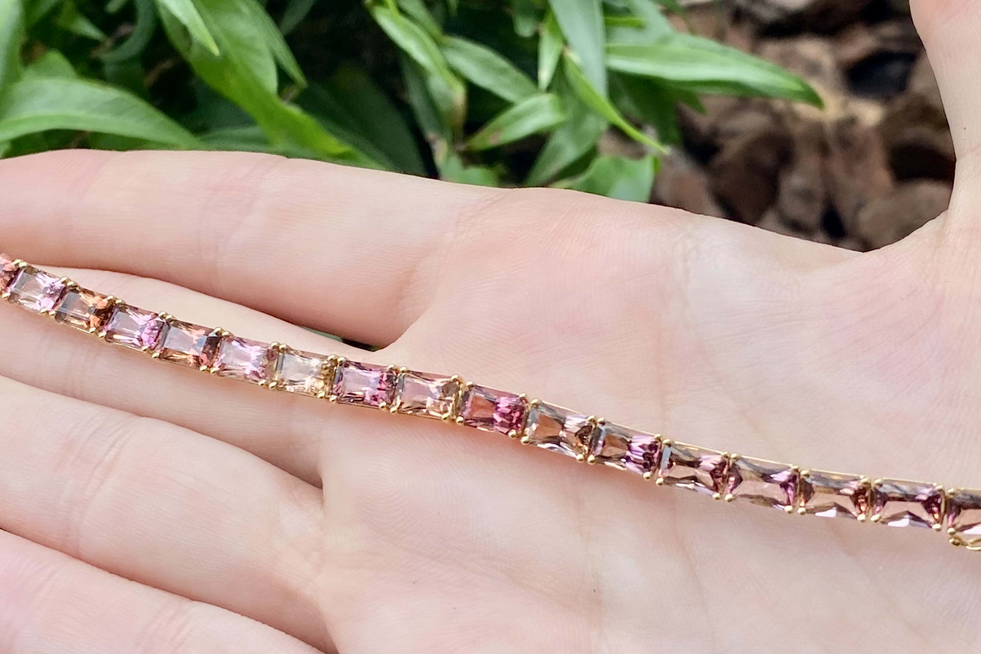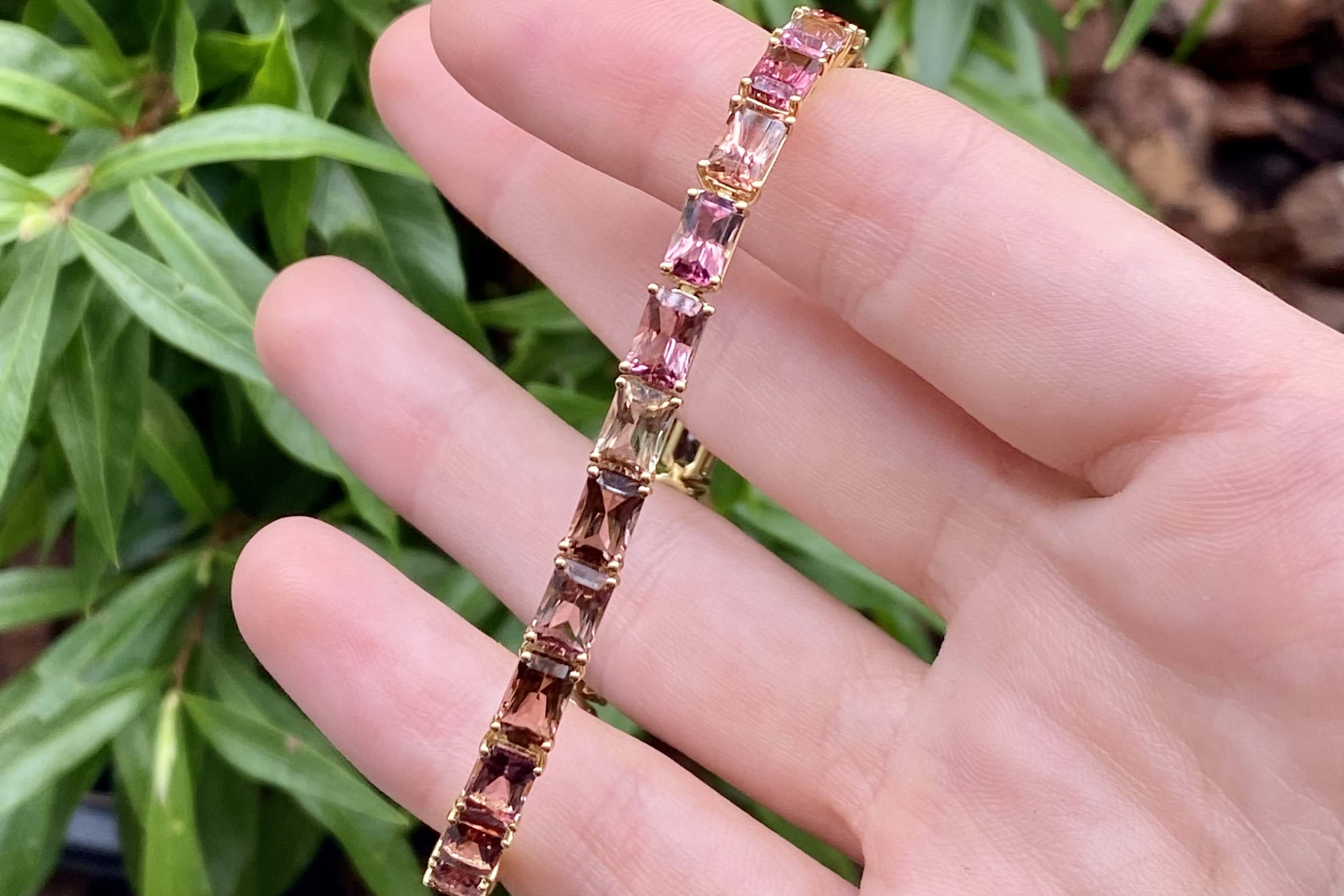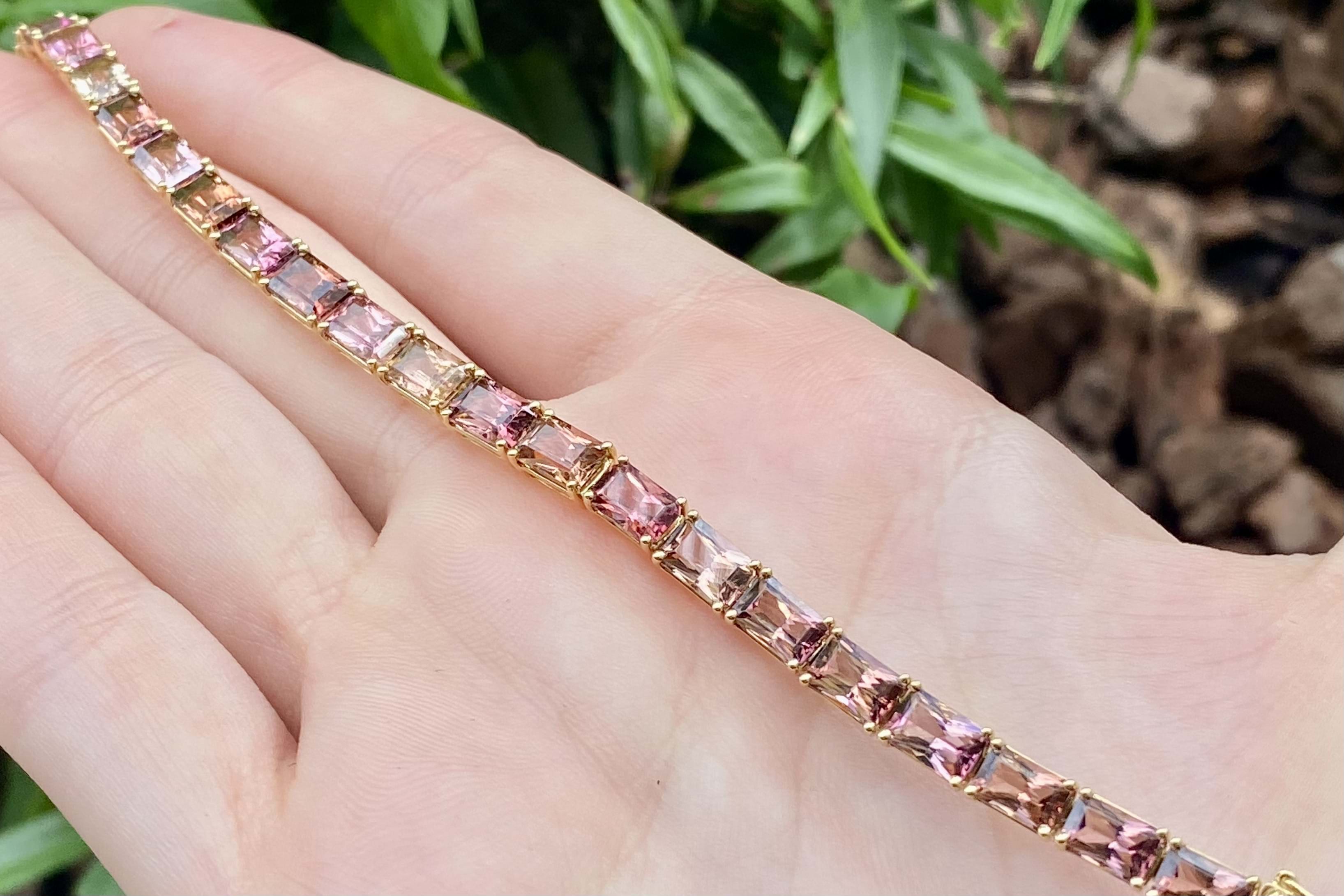 SOLD 18ct Yellow Gold 15.27ct Multi Tone Pink Tourmaline 17cm Bracelet