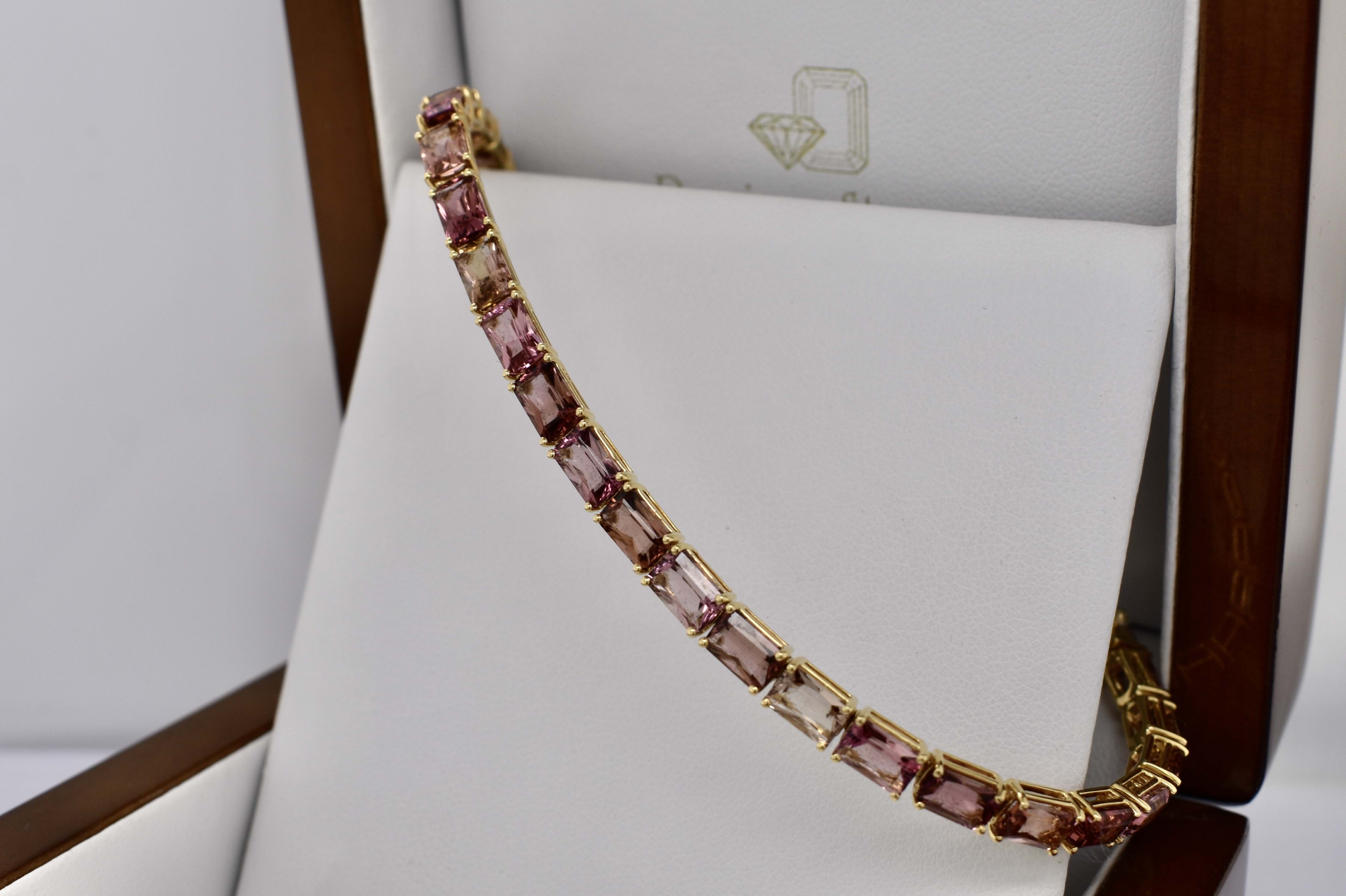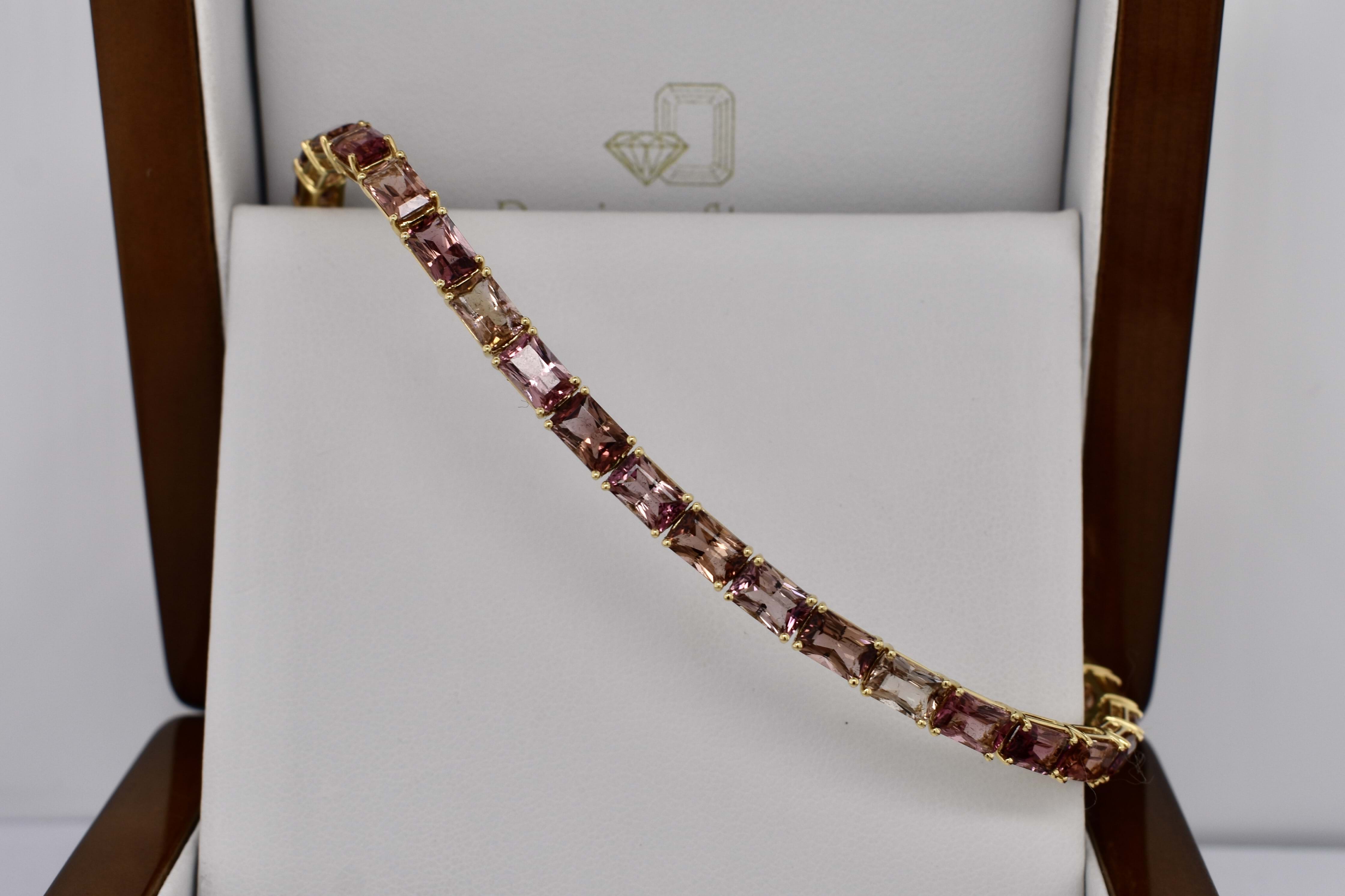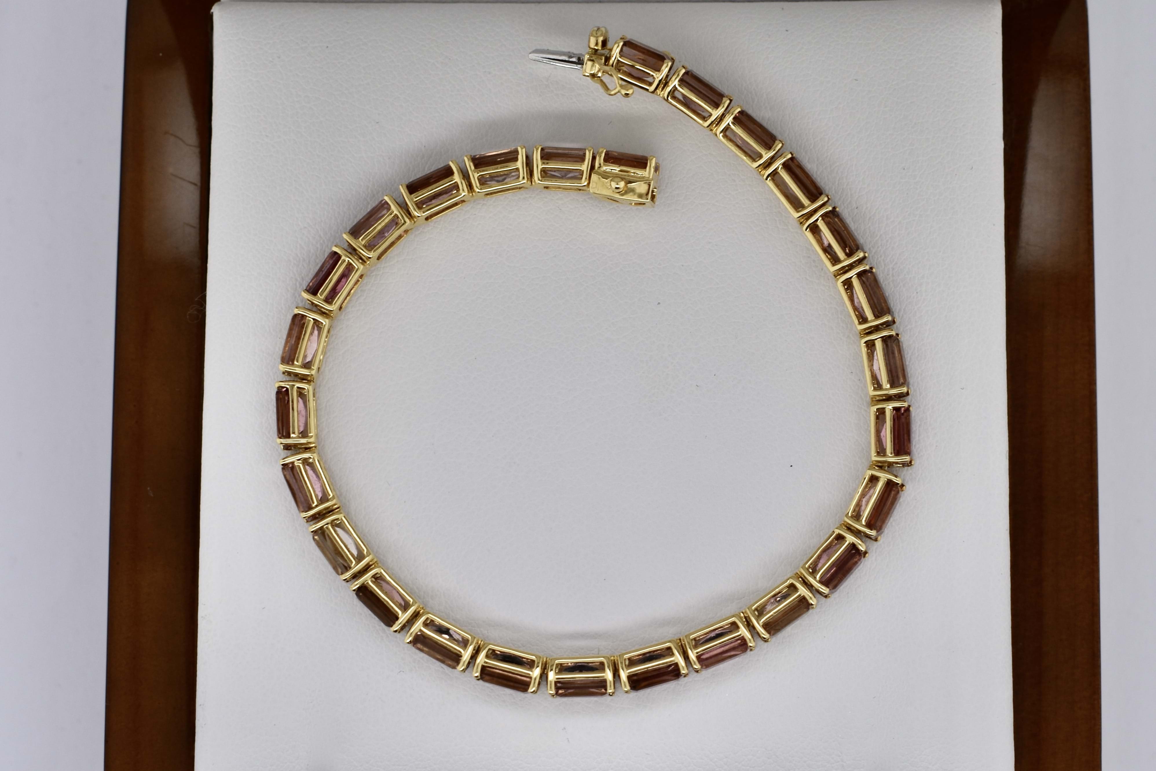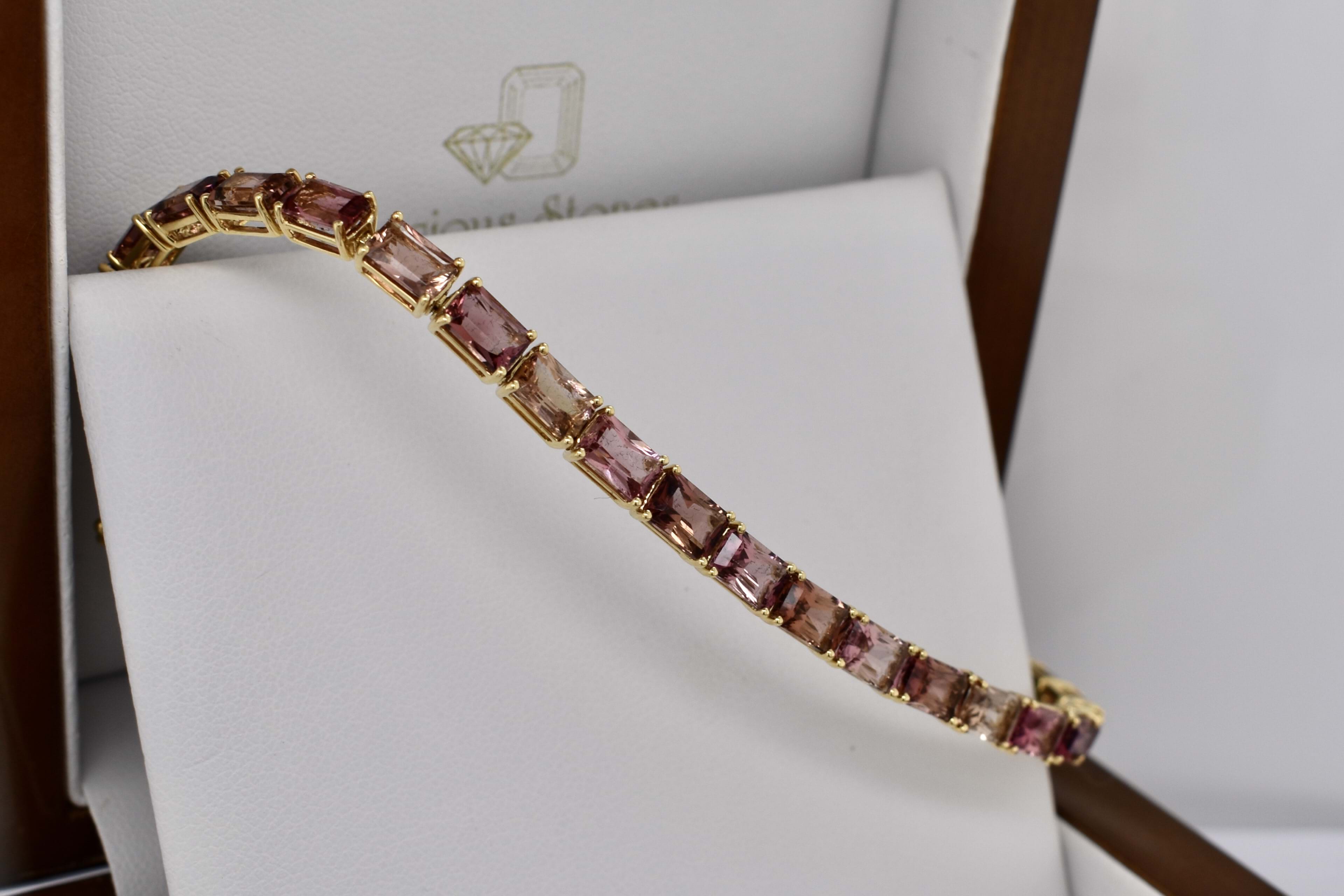 SOLD 18ct Yellow Gold 15.27ct Multi Tone Pink Tourmaline 17cm Bracelet