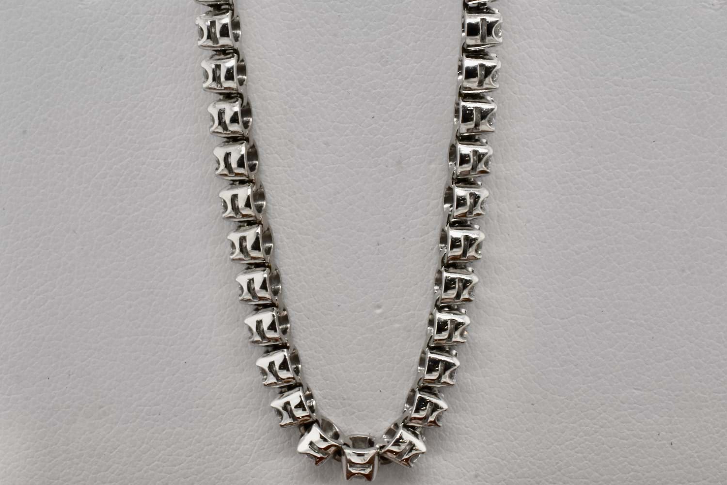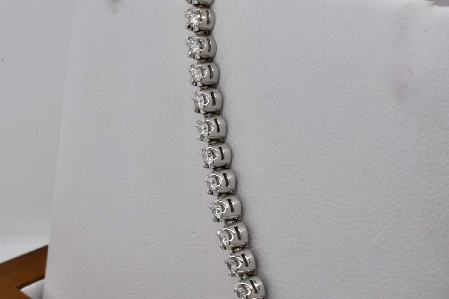 Timeless and classic diamond tennis bracelet. This secondhand Hardy Brothers bracelet has been crafted in 18ct white gold and contains 50 sparkling round brilliant cut diamonds totalling 2.00cts (H/SI). The bracelet measures 19cm and has a concealed box clasp and two figure 8 safety catches.
