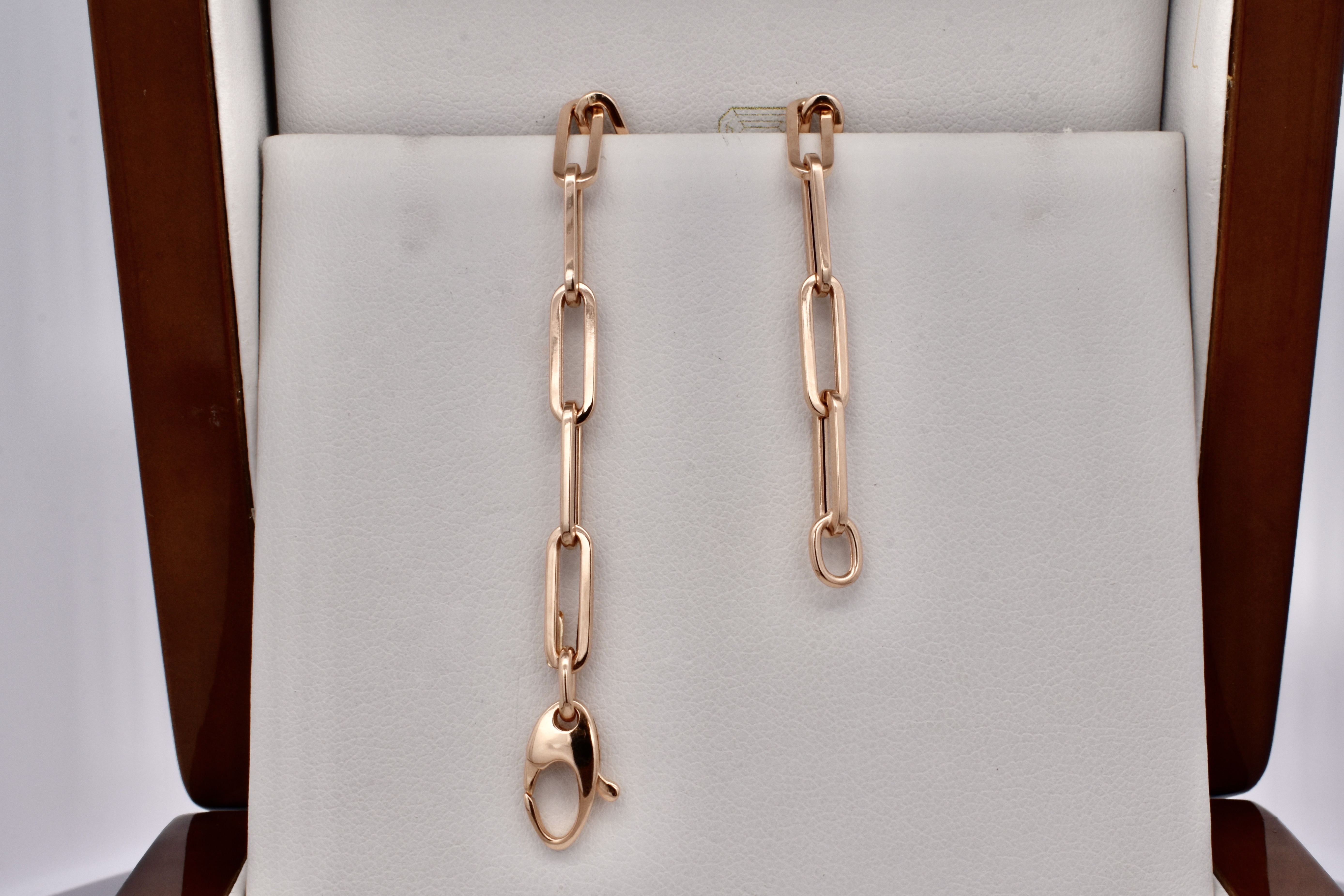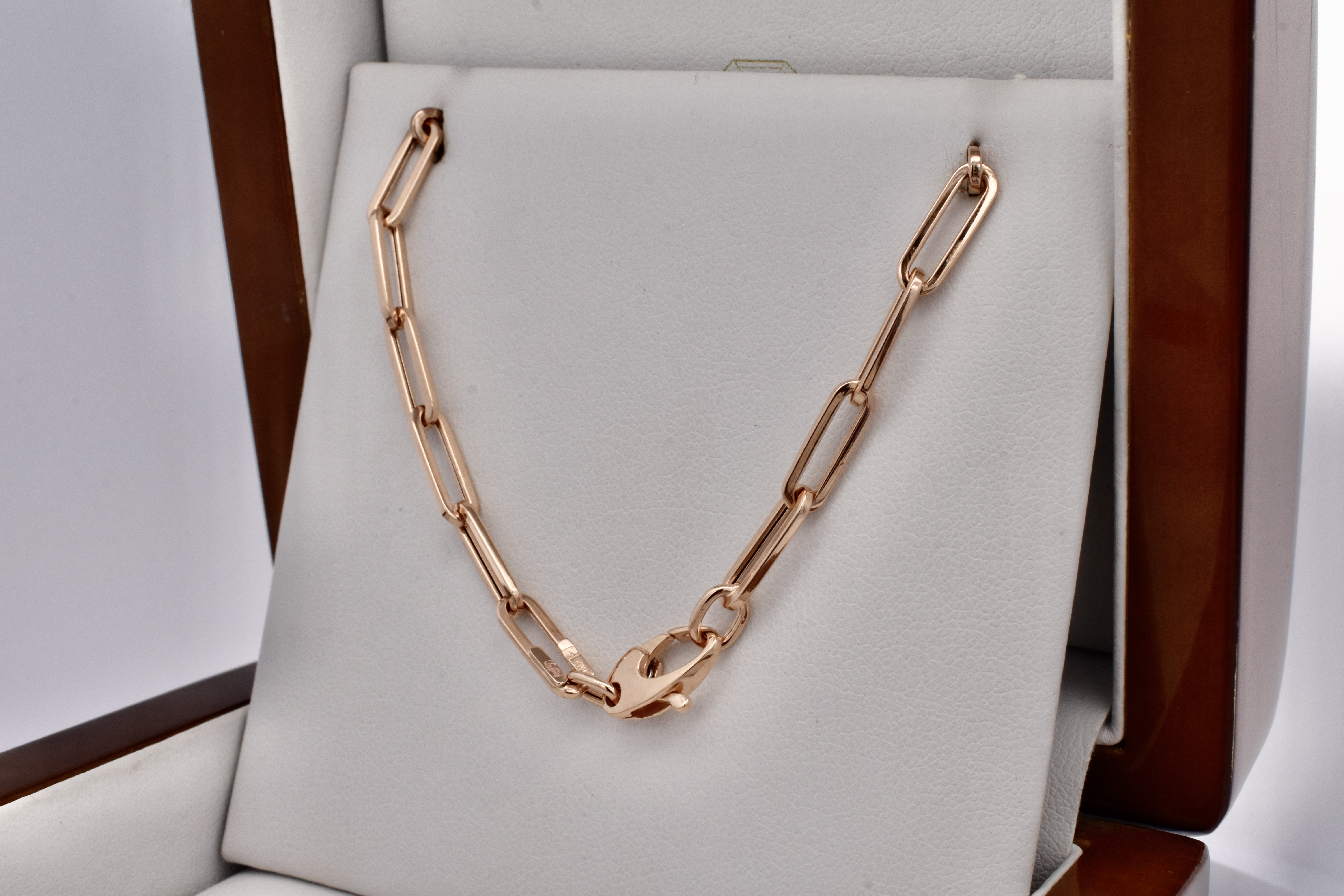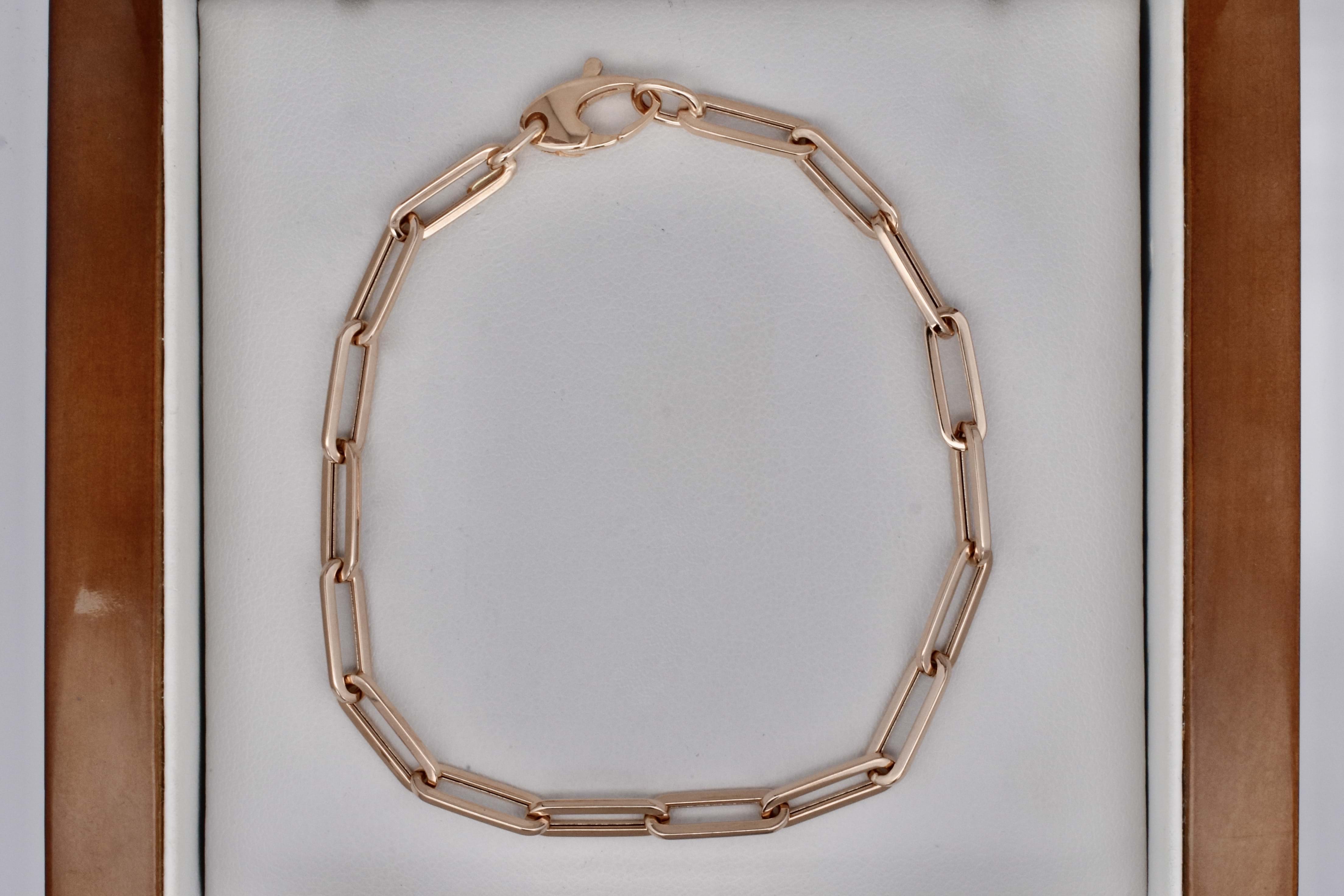 This lightweight bracelet is perfect for everyday wear, crafted from 18ct rose gold in a hollow paperlink style and finished with a generous lobster clasp for ease of use. Bracelet weighs 3.47 grams and is 18.5cm long. This bracelet has a matching chain 20345945