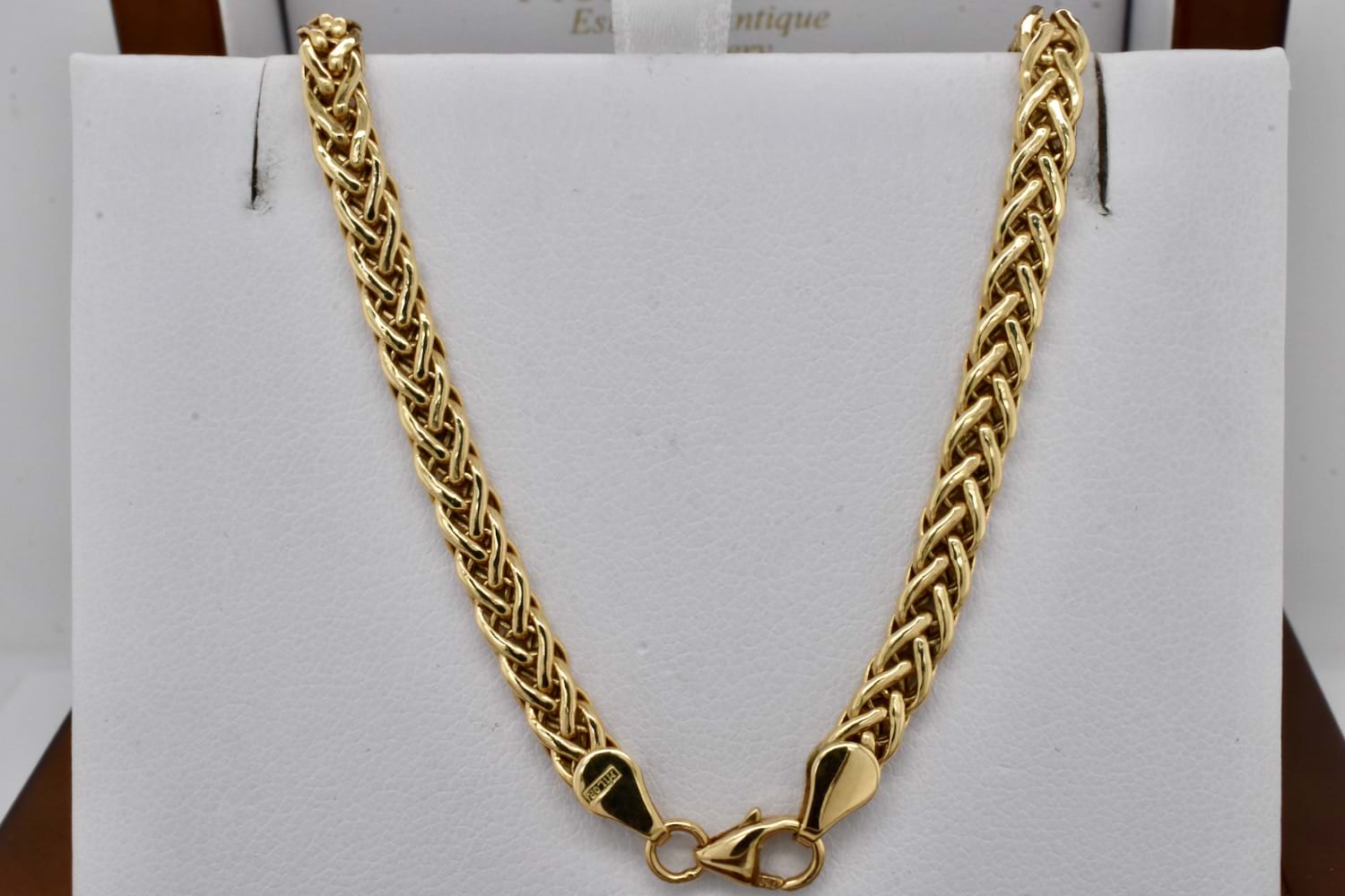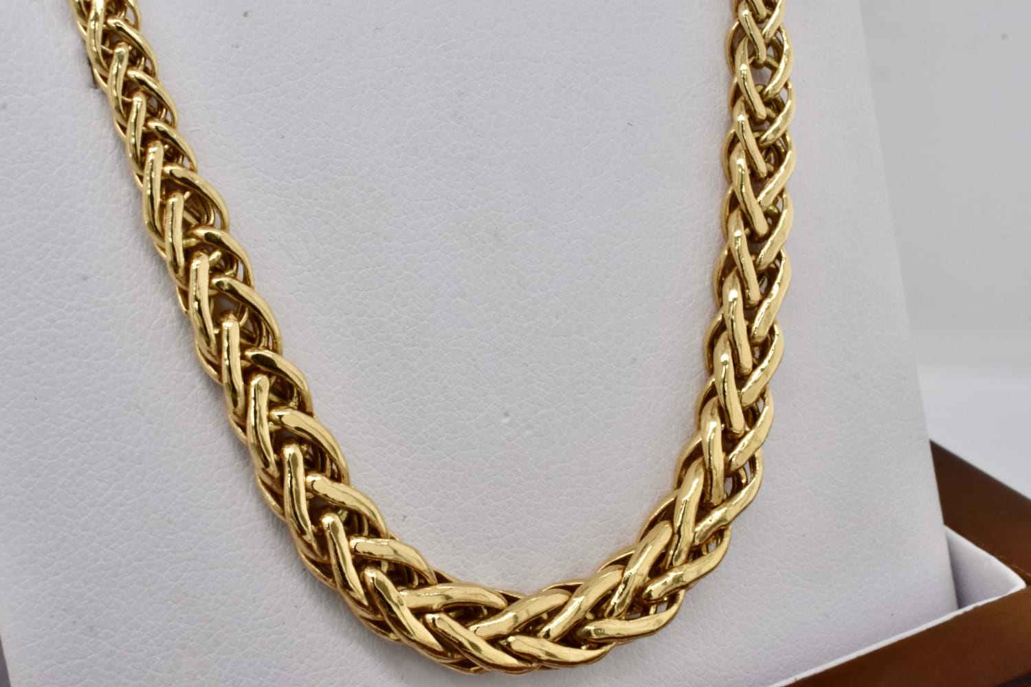 Striking and timeless 18ct yellow gold, hollow, graduated foxtail link necklace weighing 10.52grams. Length: 45cm Graduating 6-3.85mm. Independent Valuation Supplied