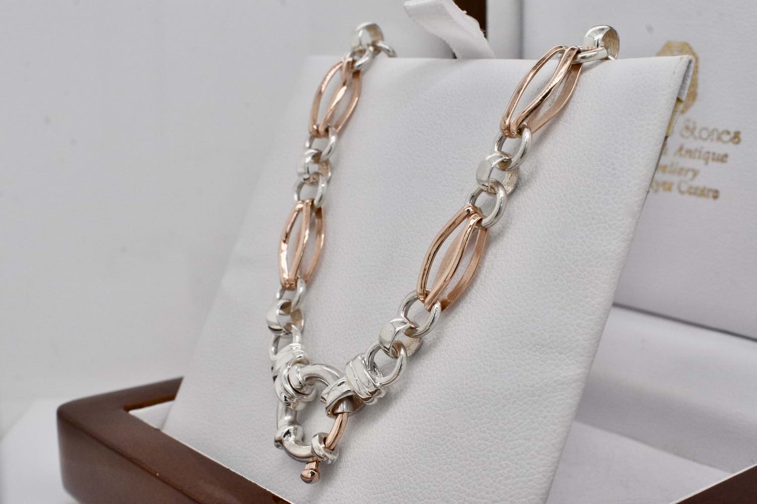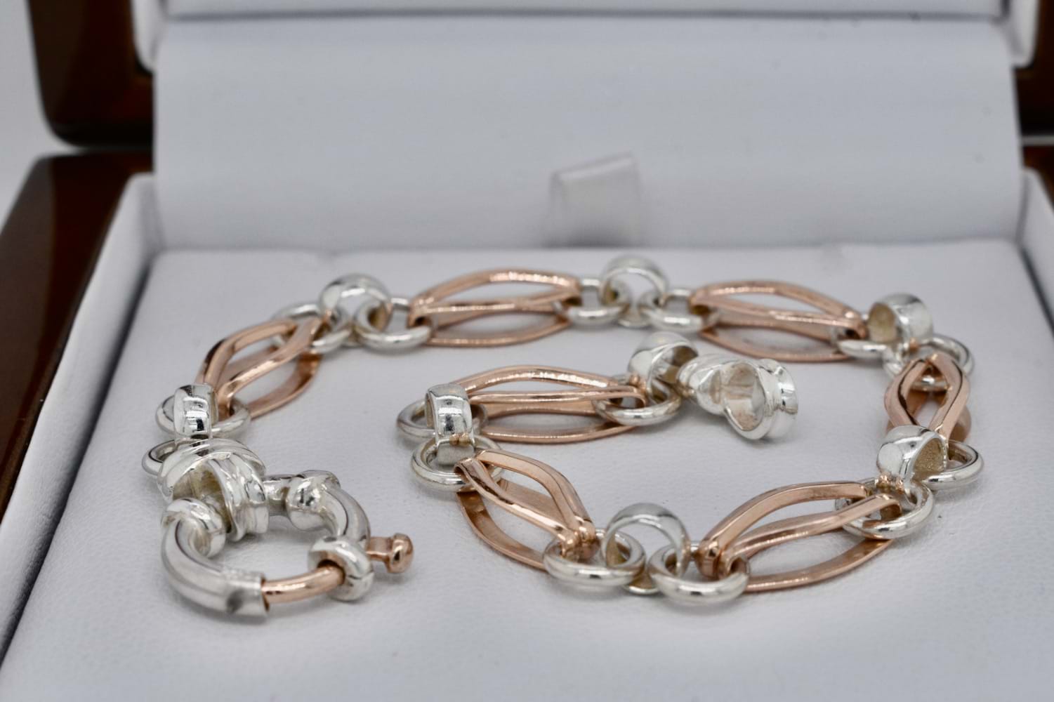 SOLD 9ct Rose Gold & Sterling Silver Fancy Link Bracelet
