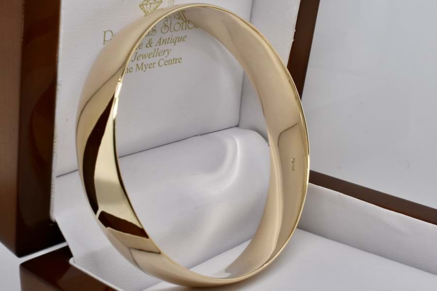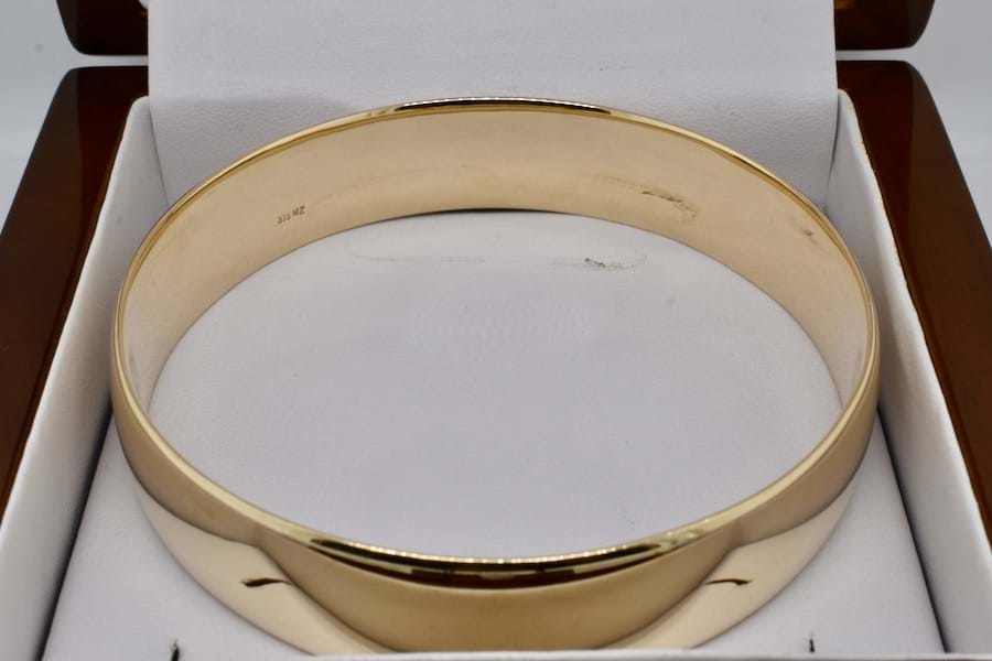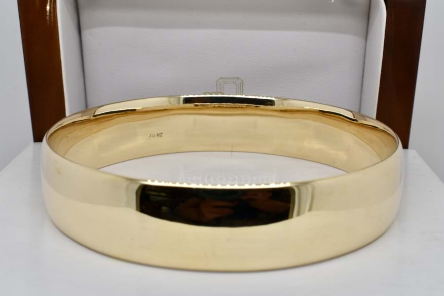 SOLD 9ct Yellow Gold 74.16g Half Round 68 x 15mm Bangle