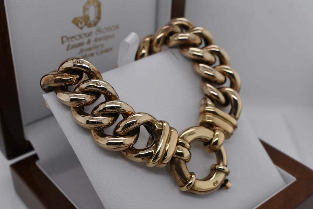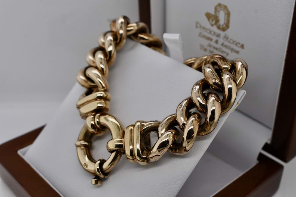 SOLD 9ct Yellow Gold 78.3gram Curb Bracelet With Boltring Clasp