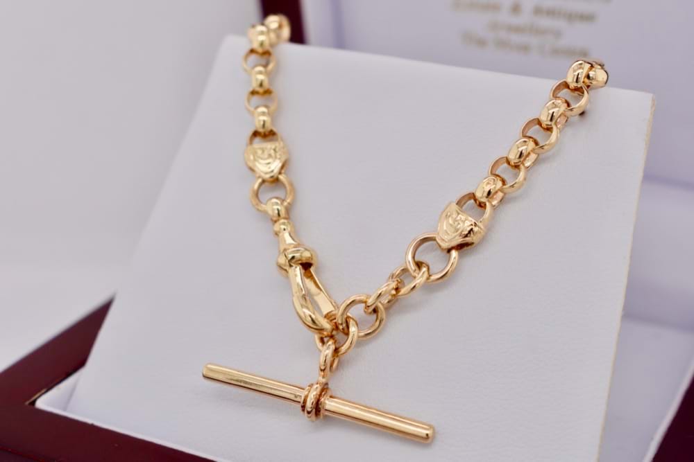 SOLD 9ct Yellow Gold Fancy Belcher Bracelet with T-bar