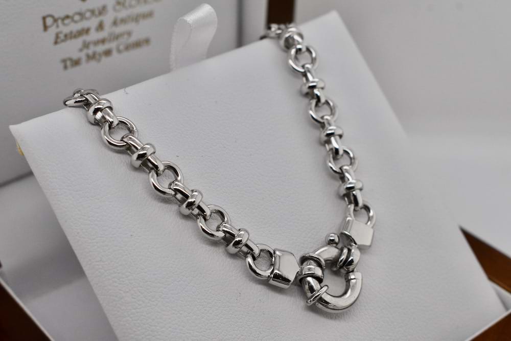 A gorgeous handmade link crafted in 9ct white gold with boltring clasp and end finials. Total weight 14.5grams