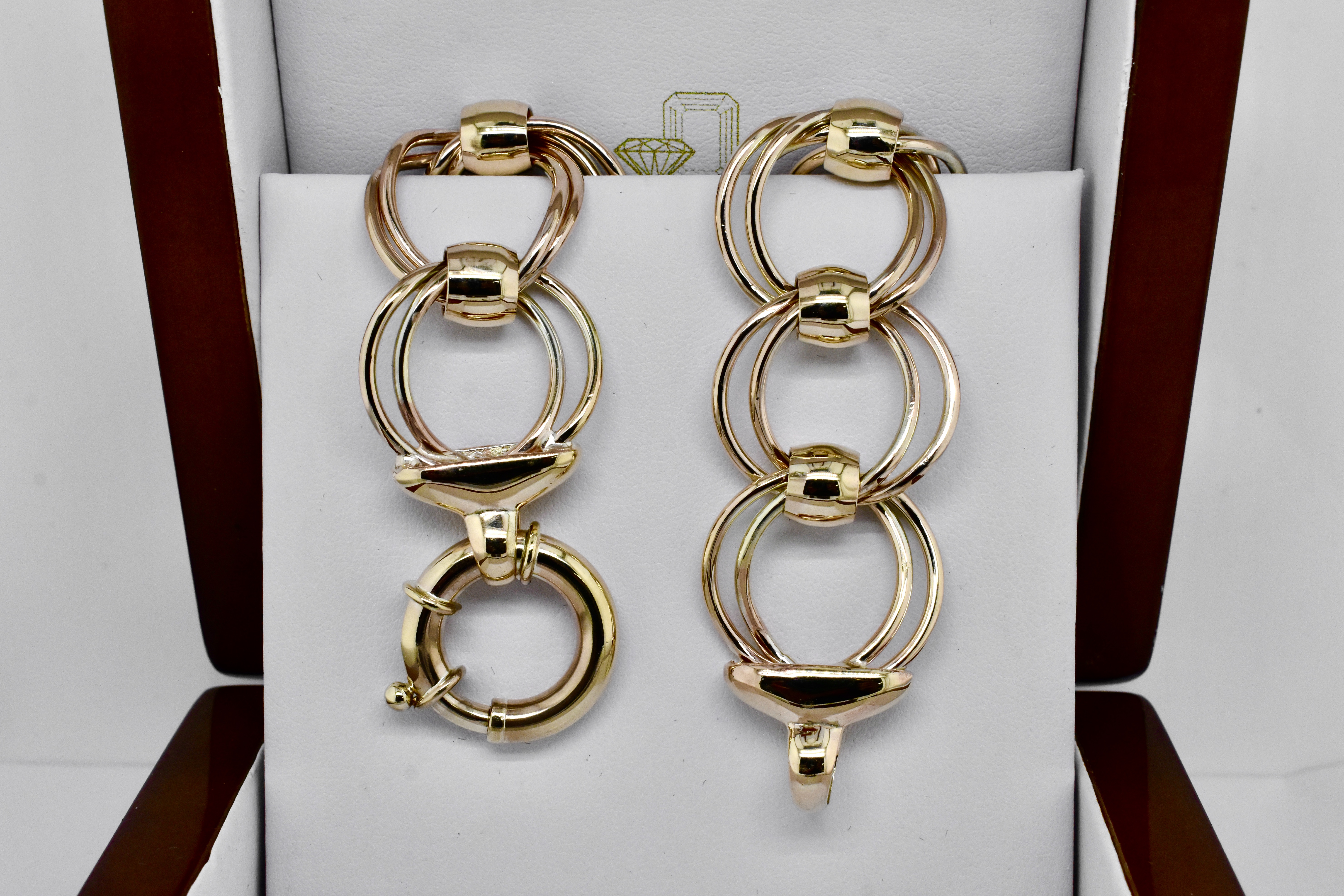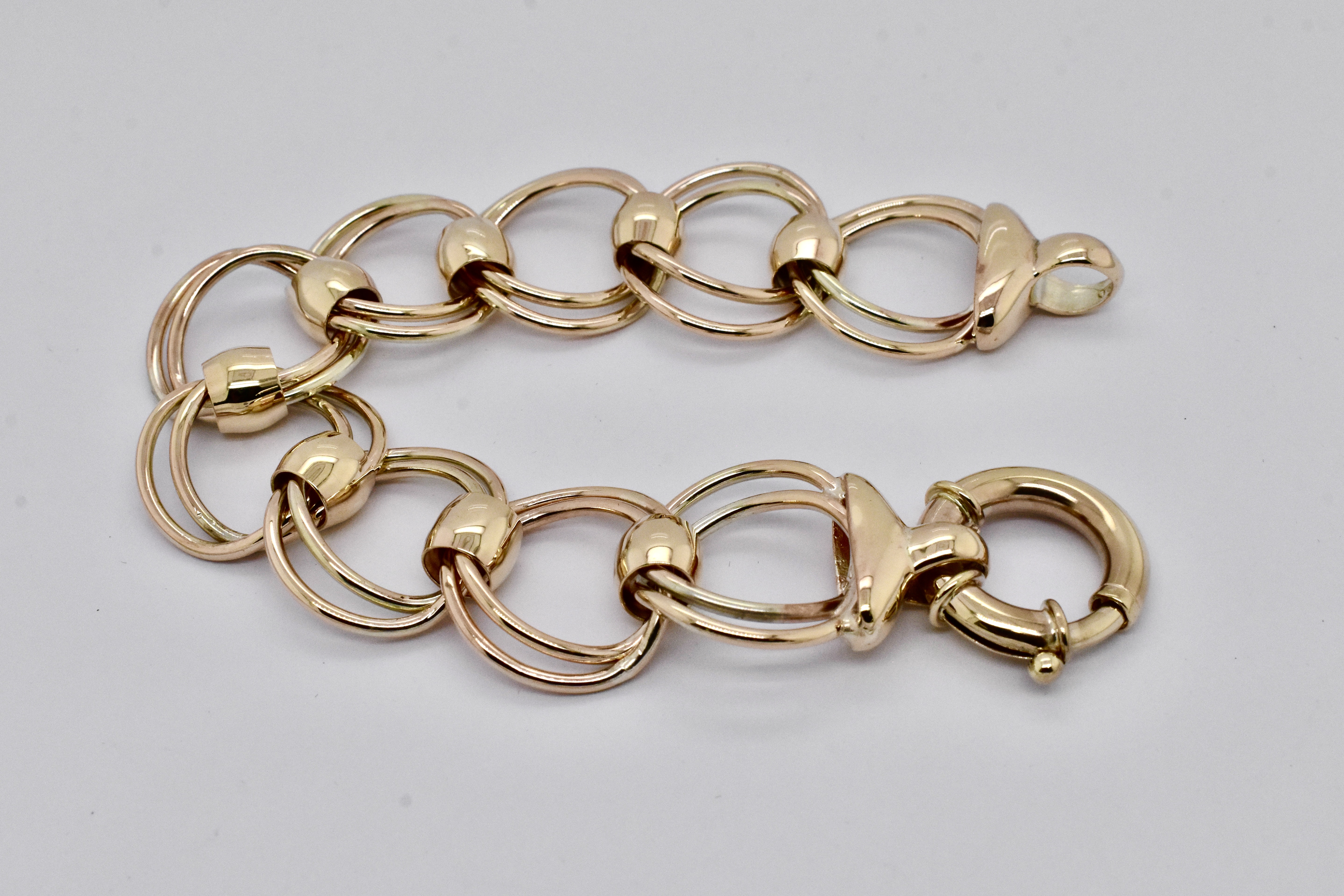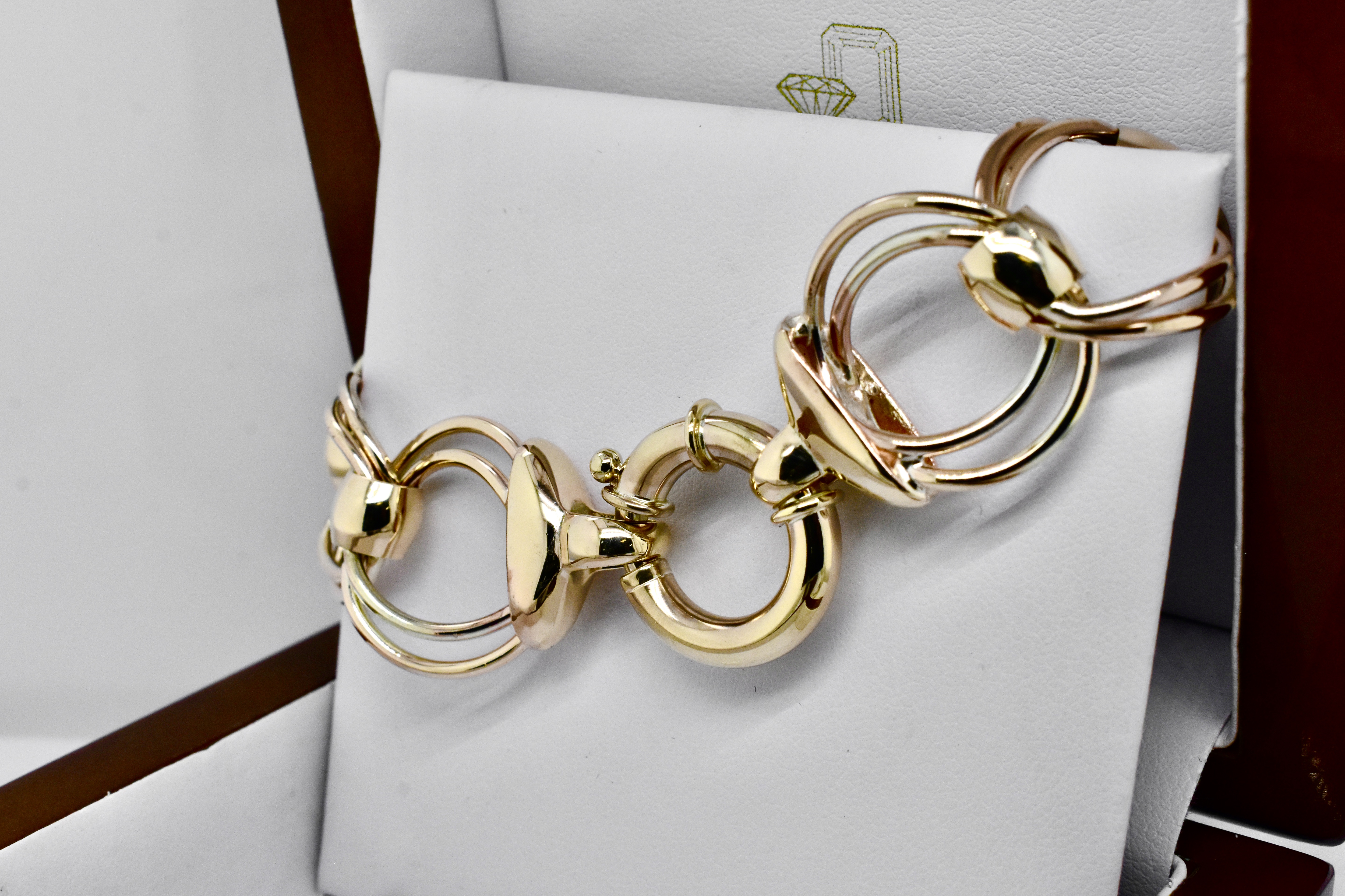 Beautifully hand crafted 9ct yellow gold large roller curb link 19cm bracelet, measuring 20mm wide and weighing 40.40grams. With a large 20mm bolt ring clasp. Complete the set with the matching chain: 20369828.