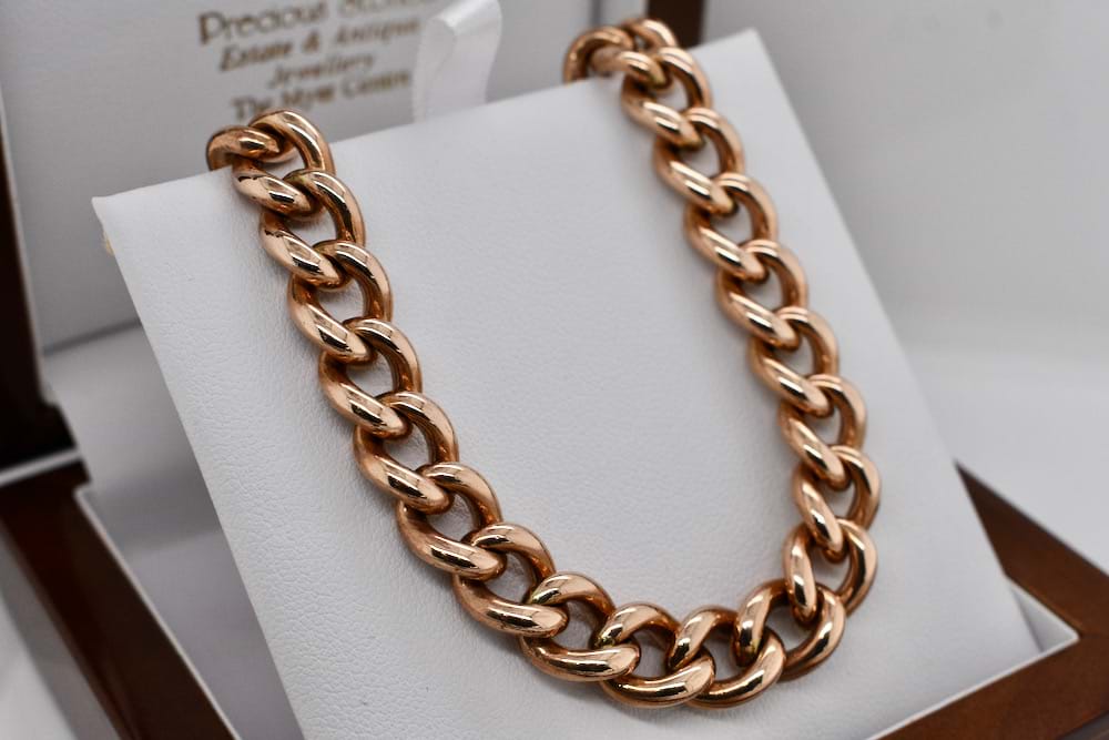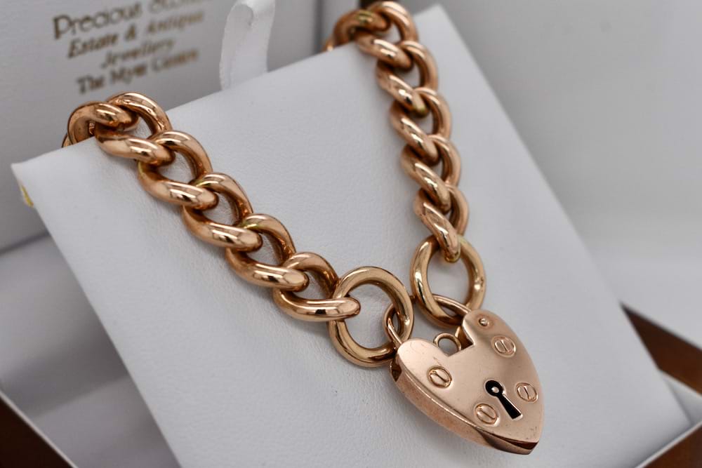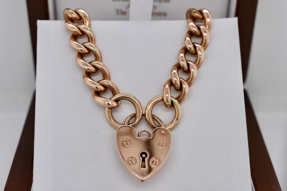 SOLD Handmade Solid 9ct Rose Gold Curb Bracelet With Heart Padlock