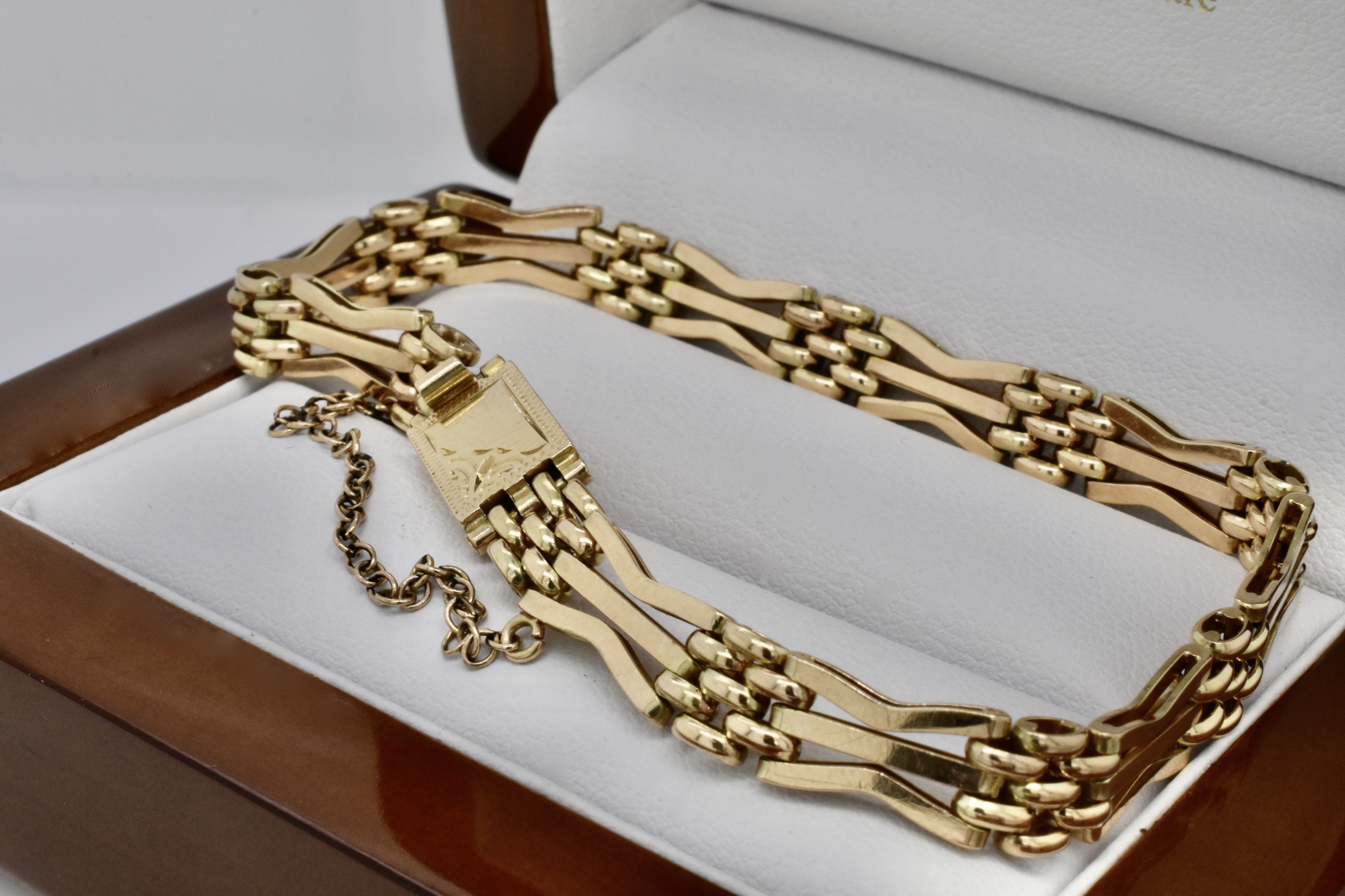 SOLD Vintage 9ct Yellow Gold Gate Bracelet with Engraved Box Clasp