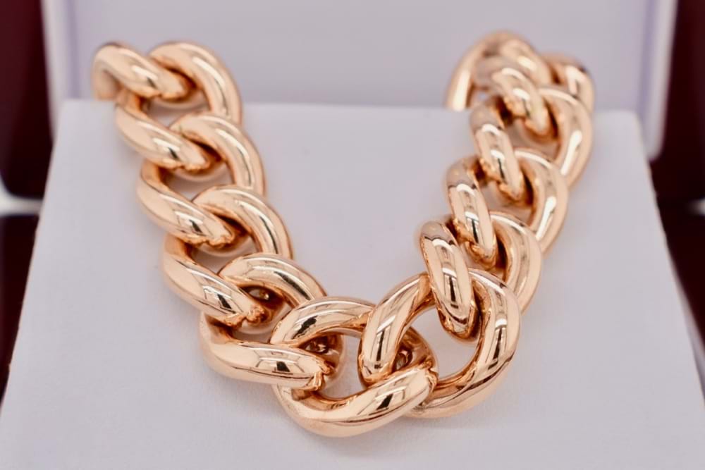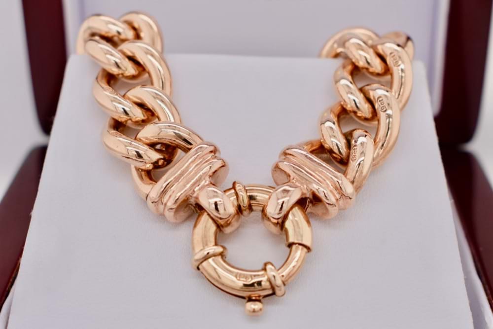 SOLD Solid 9ct Rose Gold 89.55g Curb Bracelet With Boltring Clasp