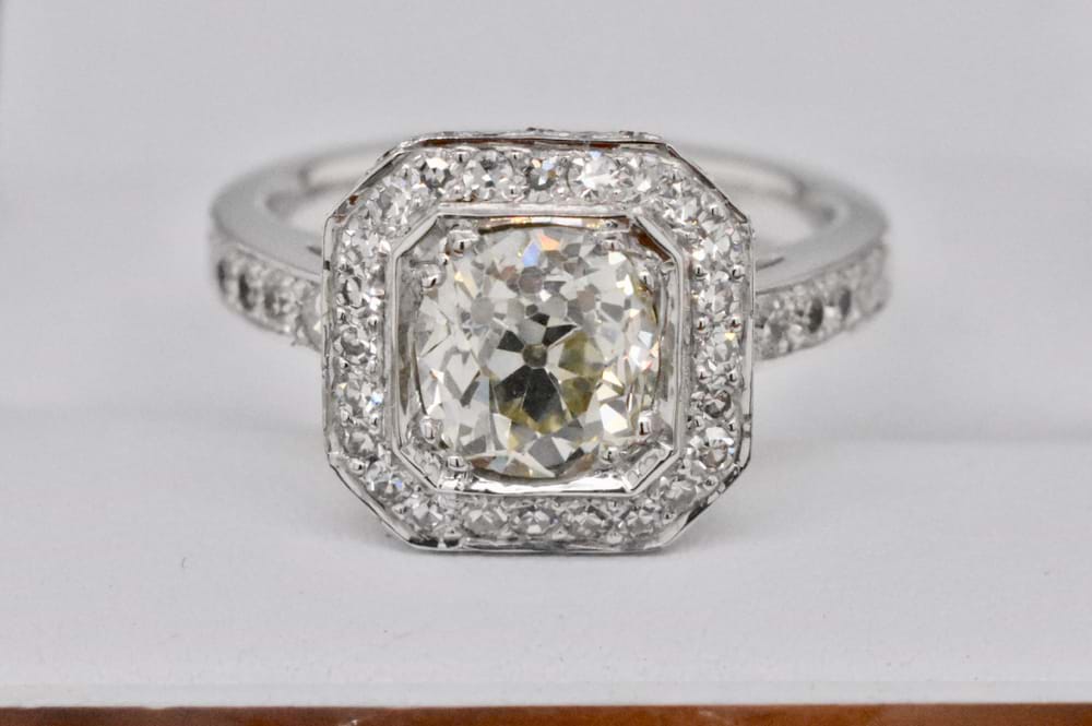 SOLD 18ct 1.52ct Old Cut Diamond & 0.63ct Halo Ring