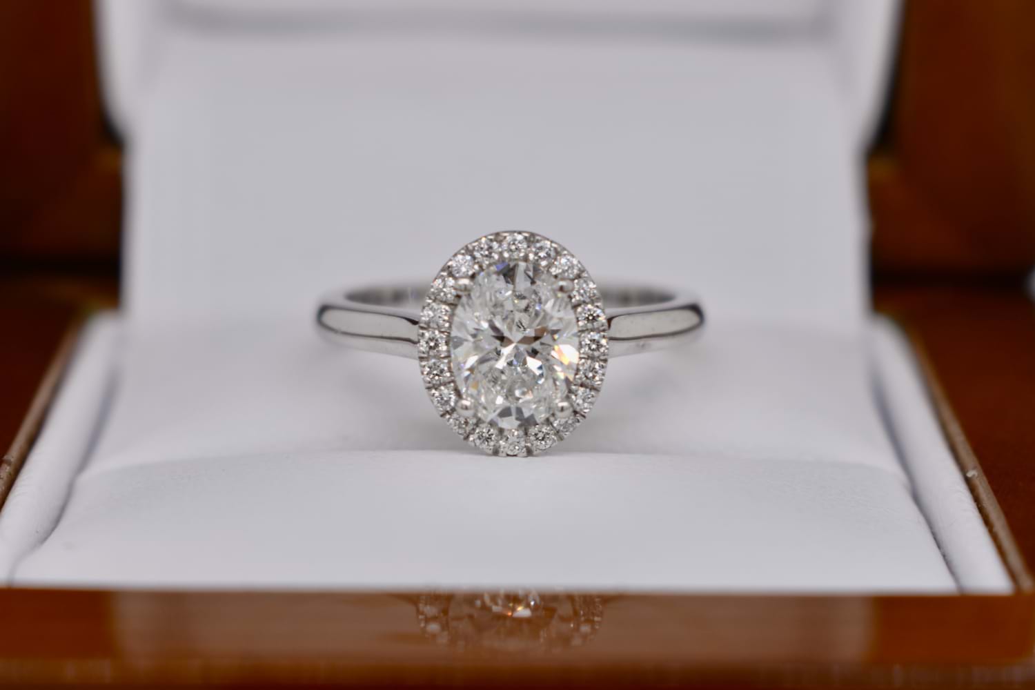 SOLD 18ct White Gold 1.01ct Oval & 0.12ct Diamond Halo Ring (J+)