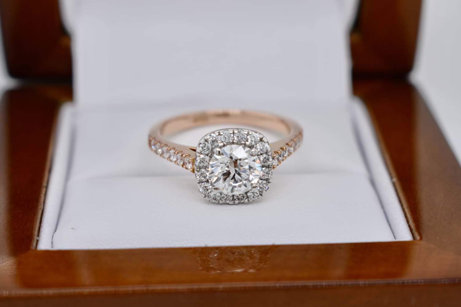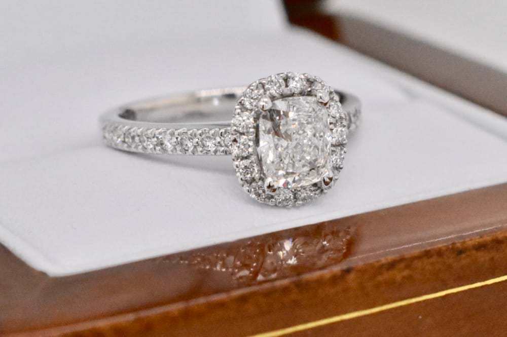 SOLD 18ct 1.47ct Cushion Cut Diamond Halo Ring