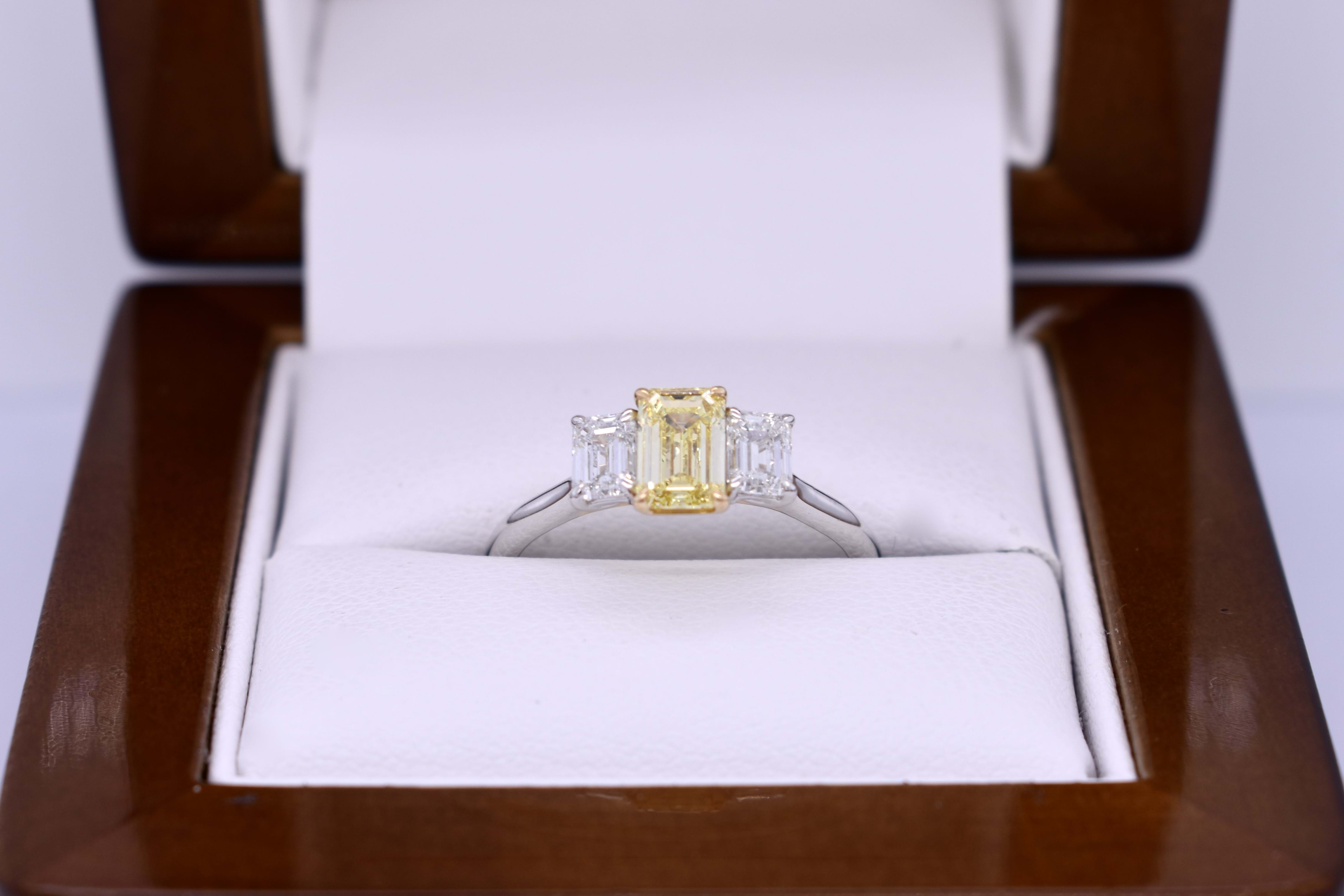 SOLD 18ct White Gold 0.70ct Fancy Intense Yellow Diamond & 0.63ct FVS Diamond Trilogy Ring (M+)