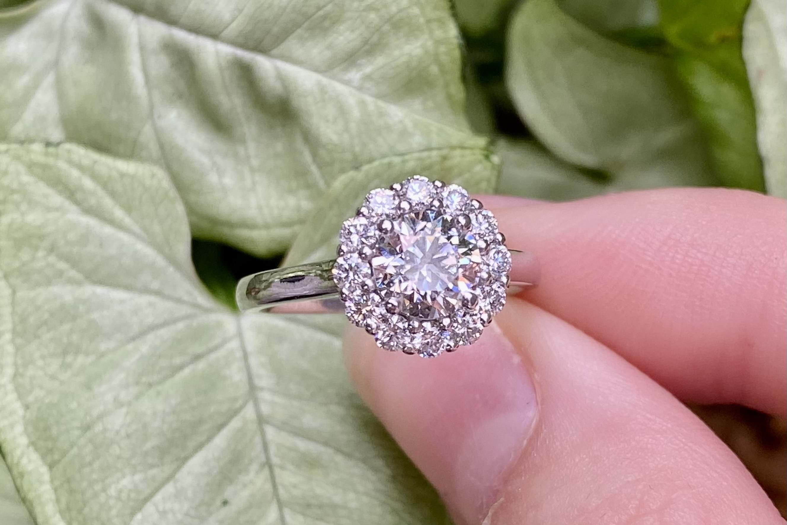 SOLD 18ct White Gold 1.21ct Round Brilliant Cut Diamond Cluster Ring