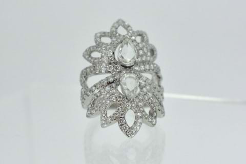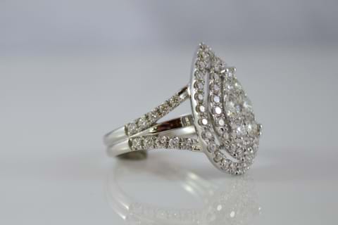 SOLD. 18ct white gold eye catching pear design diamond ring