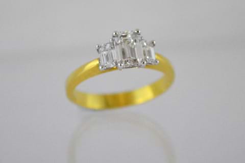 SOLD 18ct 0.74ct GIA emerald cut Diamond Ring with matching sides