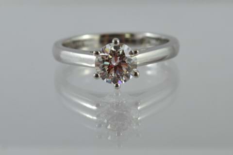 18ct white gold 1.01ct GIA certified round brilliant cut diamond set in a classical 6 claw setting. Independent Valuation Supplied.