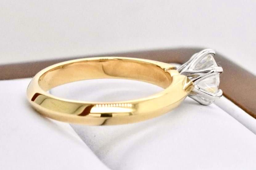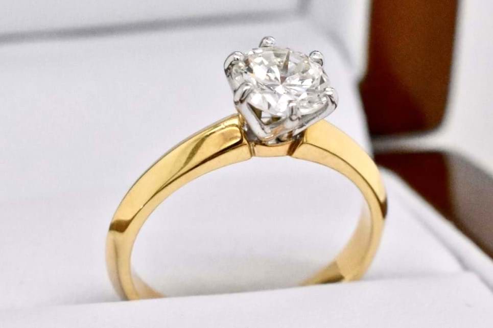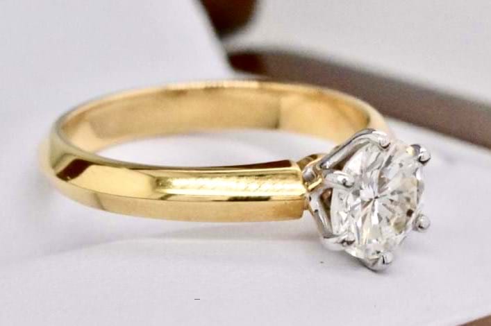 This 1.10ct (I/SI1) round brilliant cut diamond has a great look and has been set in a timeless 18ct yellow & white gold solitaire ring. A perfect combination with diamond bands. Independent Valuation Supplied. Finger size N