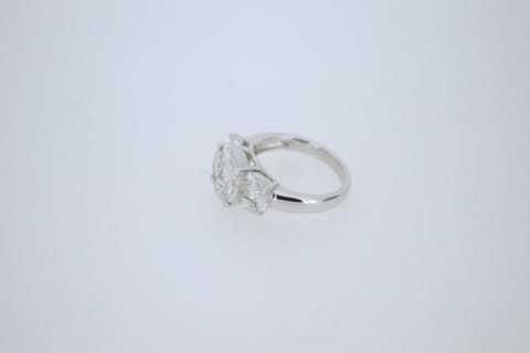 With amazing impact this stunning illusion set diamond ring features fantastic quality white diamonds in 18ct white gold. To give the illusion of much larger single stones these marquise and princess cut diamonds combined total an impressive 2.37cts. Independent Valuation Supplied