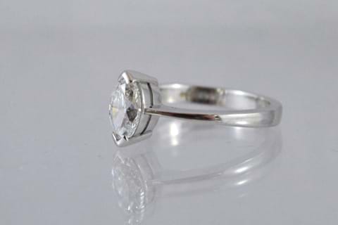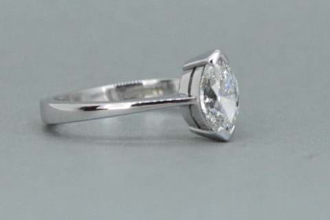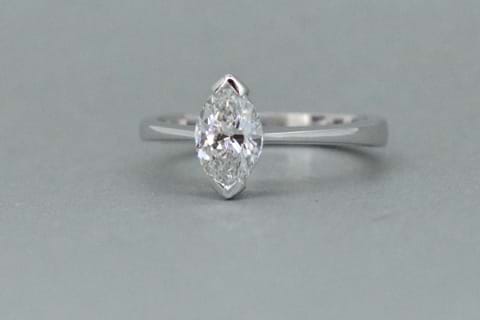 Hallmarked "Sheffield 2002" this platinum solitaire ring features a stunning GIA certified E/VS2 marquise shape Diamond. With end capped setting this classic solitaire is perfect for someone who likes something a little different, but still traditional. Independent Valuation Supplied