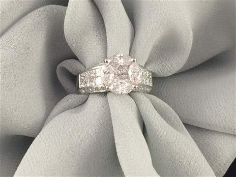 This eye catching and stunning piece is set all in 18ct white gold and features a combination of marquise, princess cuts and round brilliant cut diamonds in a clever design to give fabulous impact. With an impressive 3.27cts of high quality white diamonds, this piece does not go unnoticed. If you want to feel fabulous, this ring is for you. Independent Valuation Supplied.