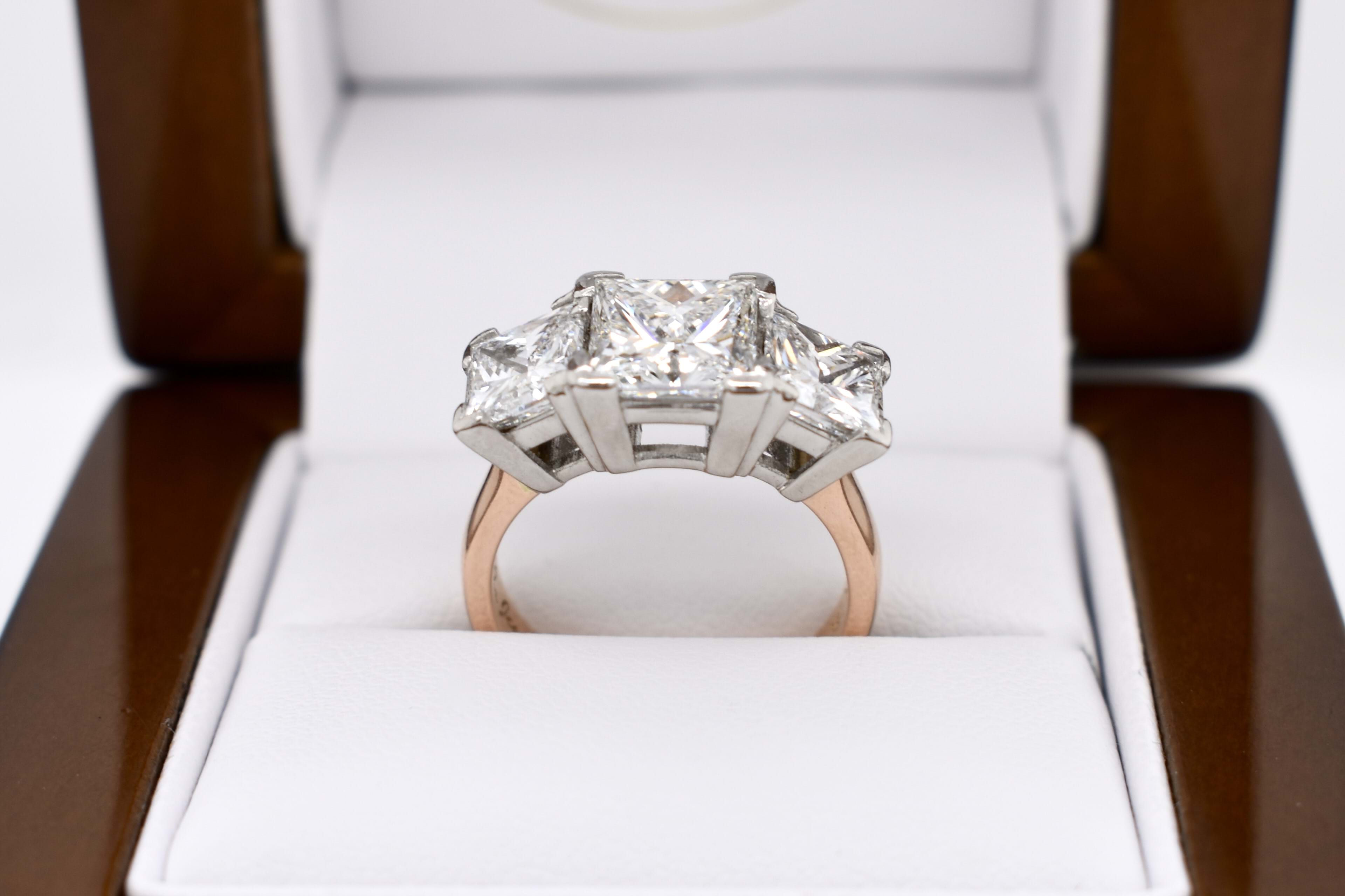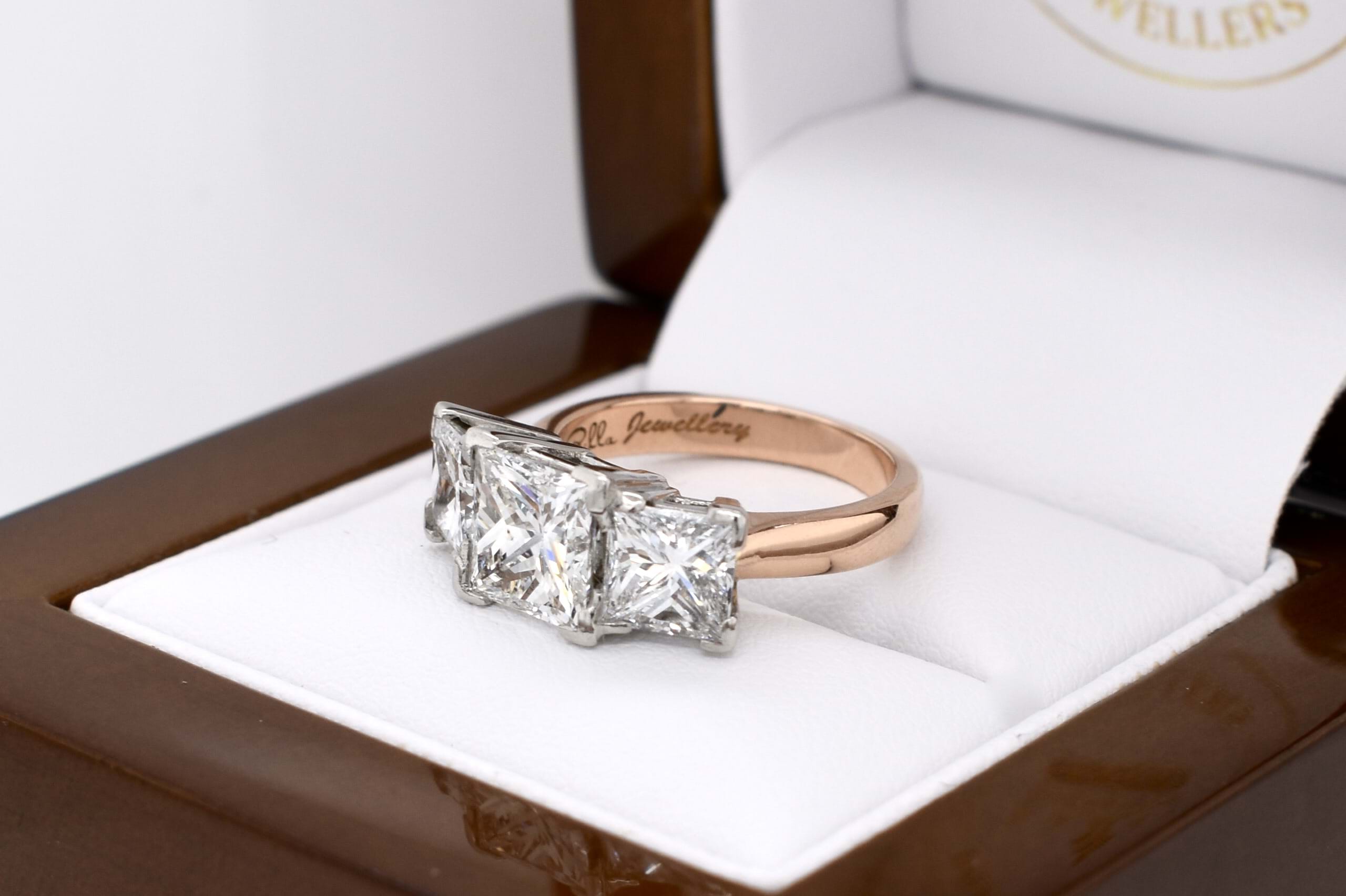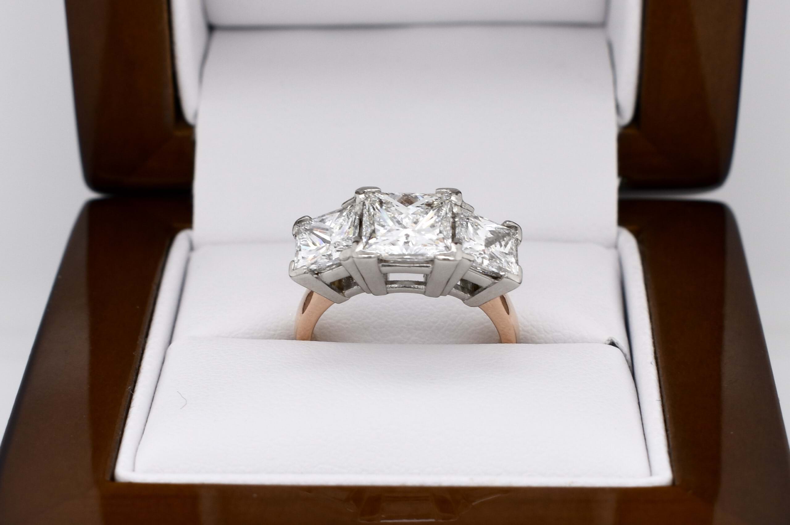 SOLD 18ct Rose Gold & Platinum 4.06ct Princess Cut Diamond Trilogy Ring