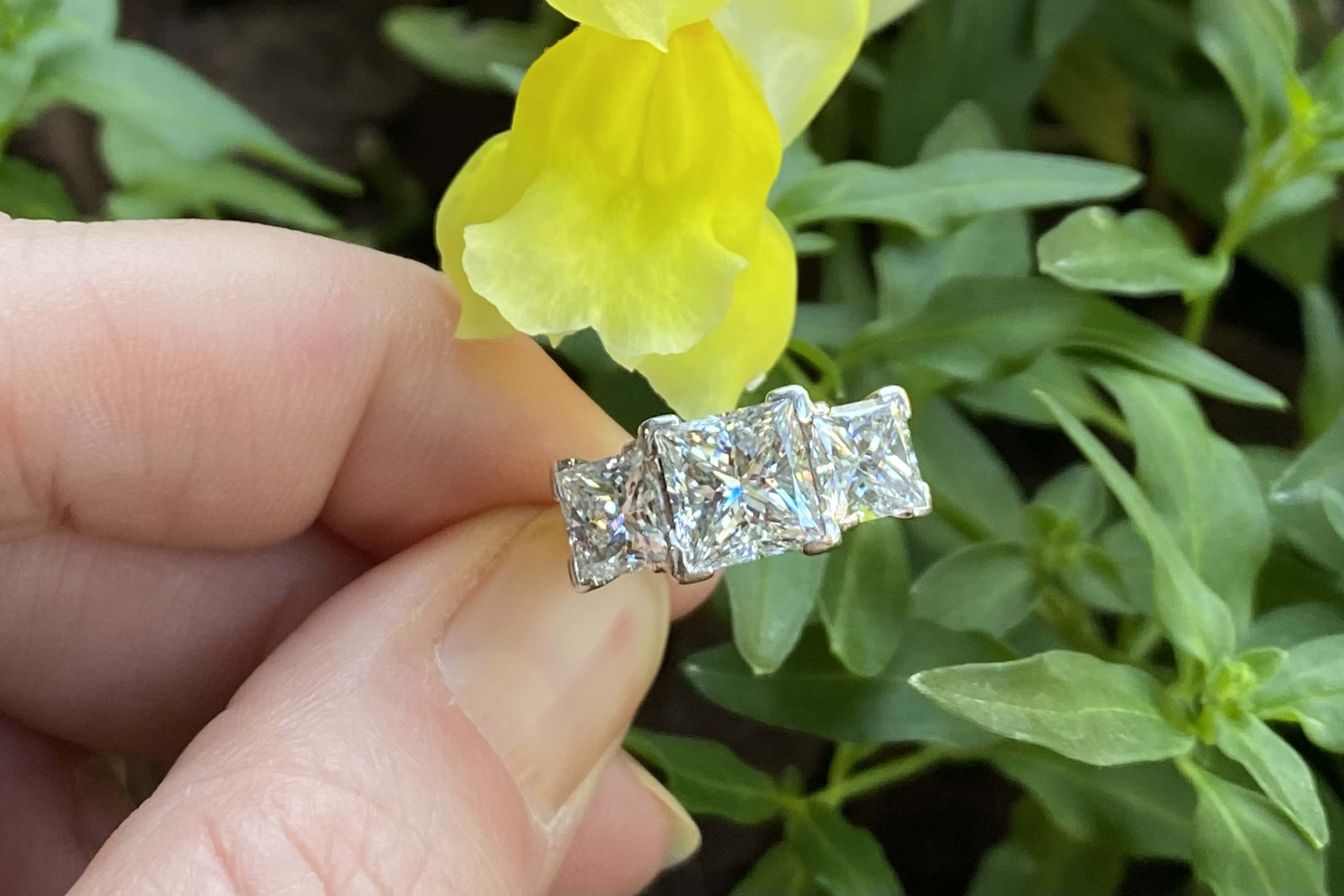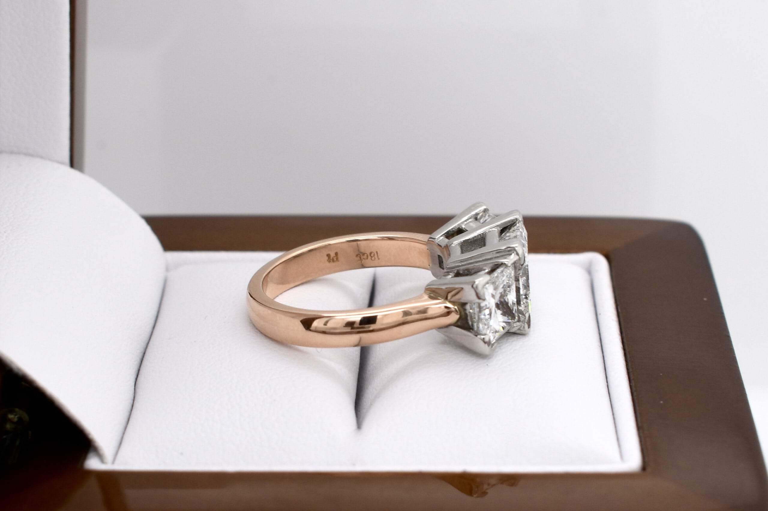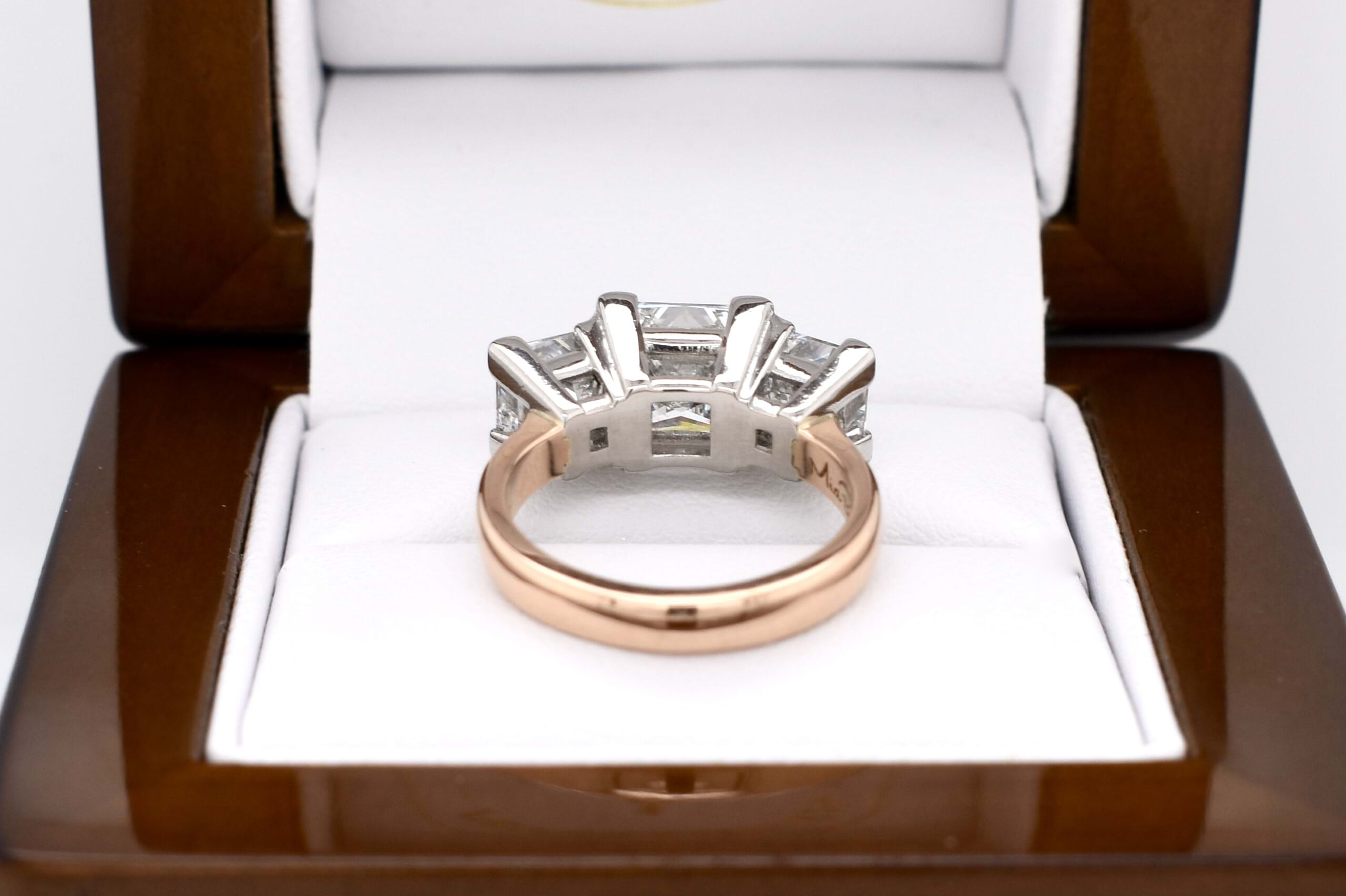 SOLD 18ct Rose Gold & Platinum 4.06ct Princess Cut Diamond Trilogy Ring