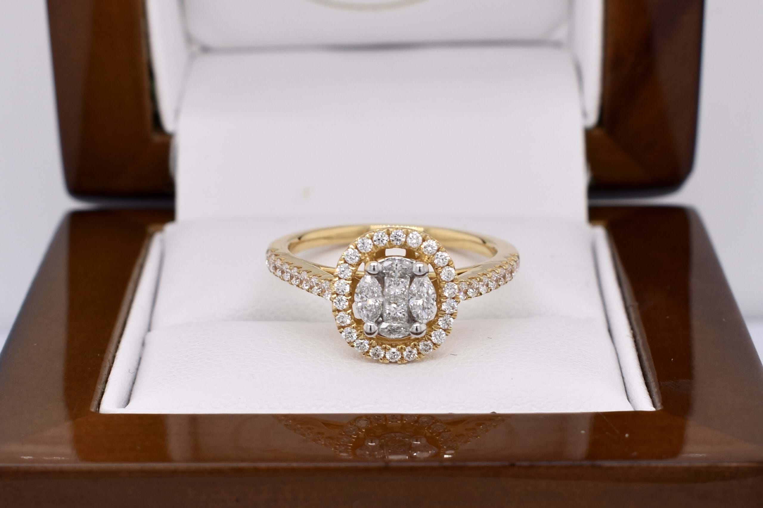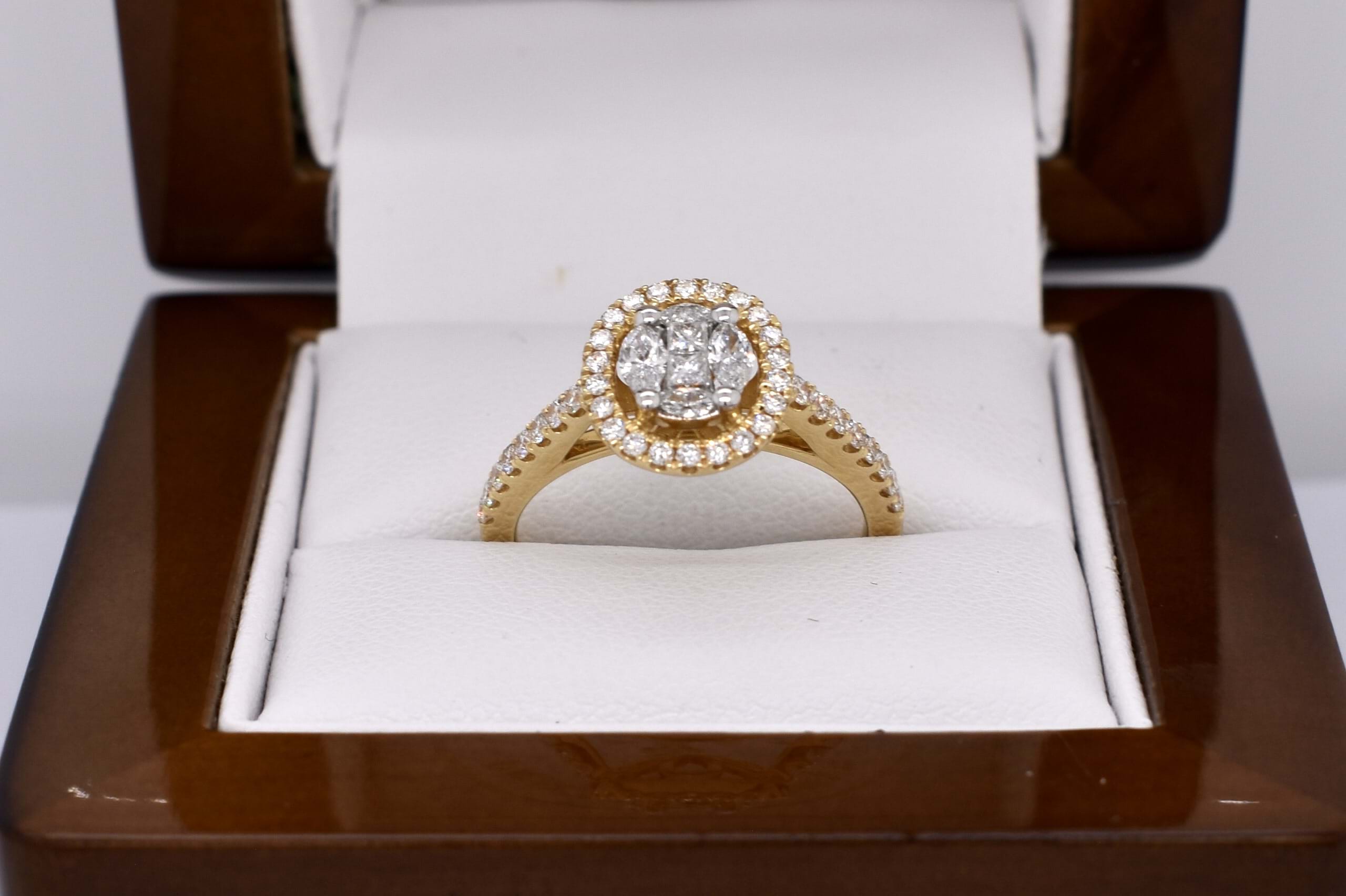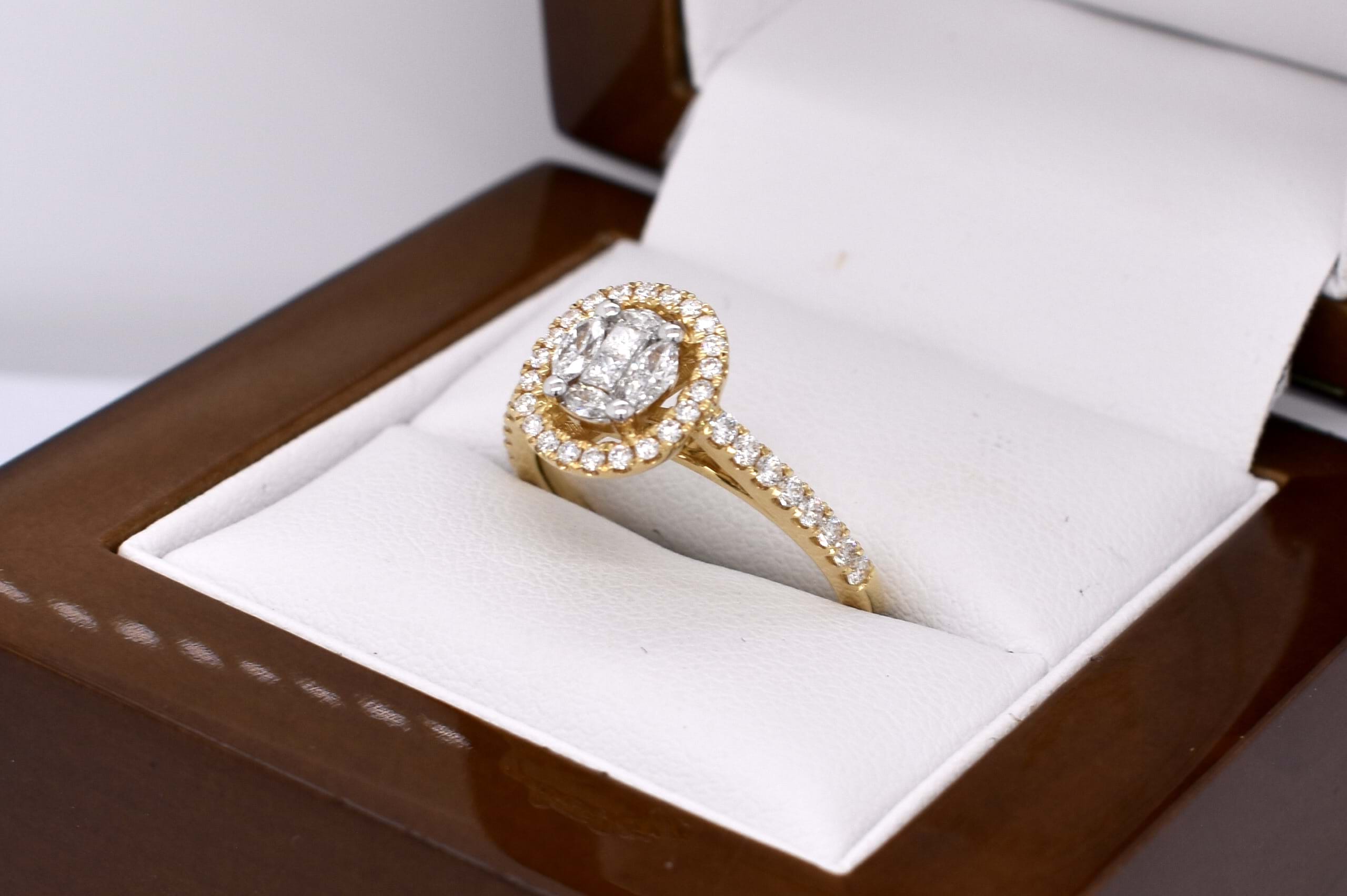 SOLD 18ct Yellow Gold 0.68ct Diamond Round Illusion & Halo Ring