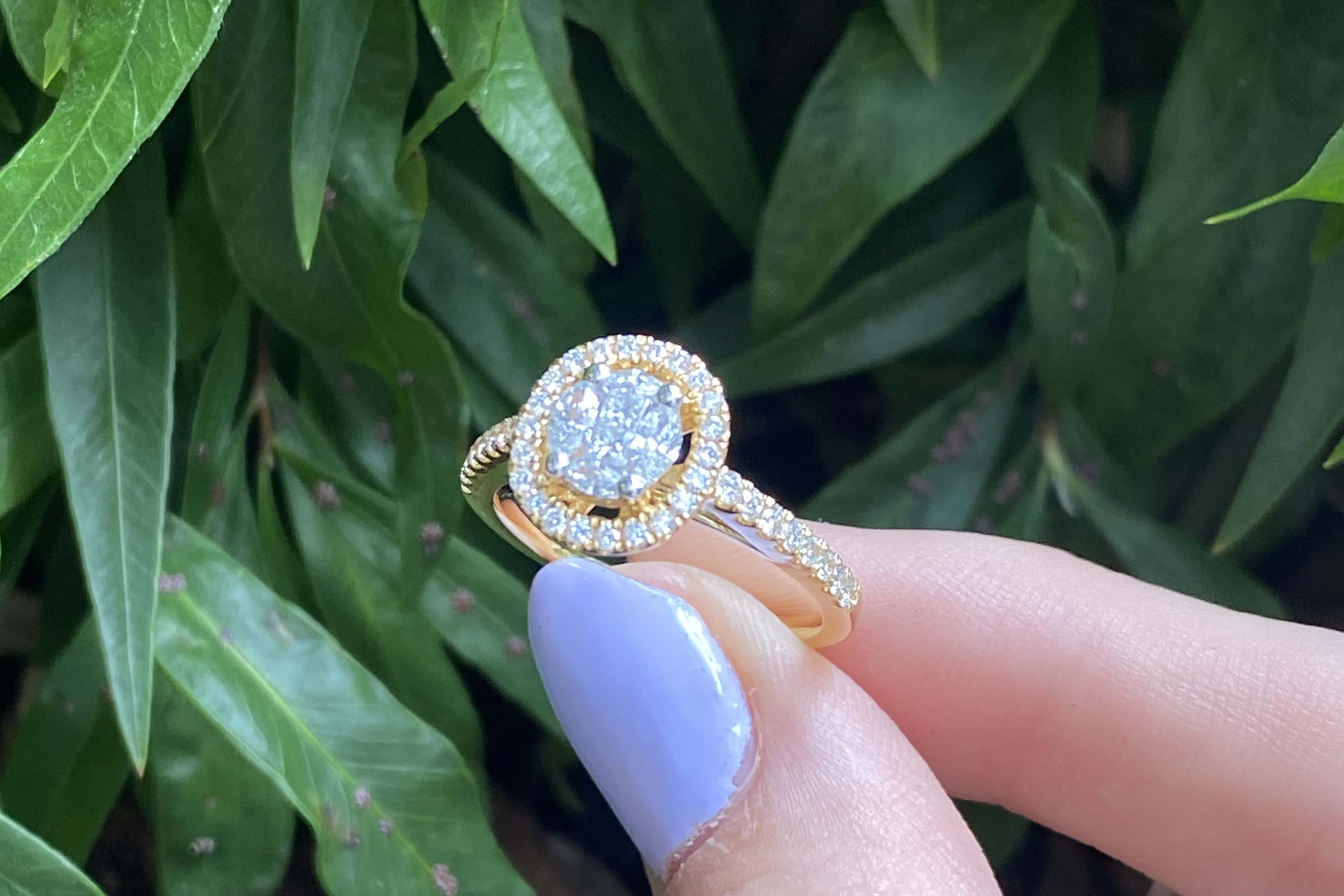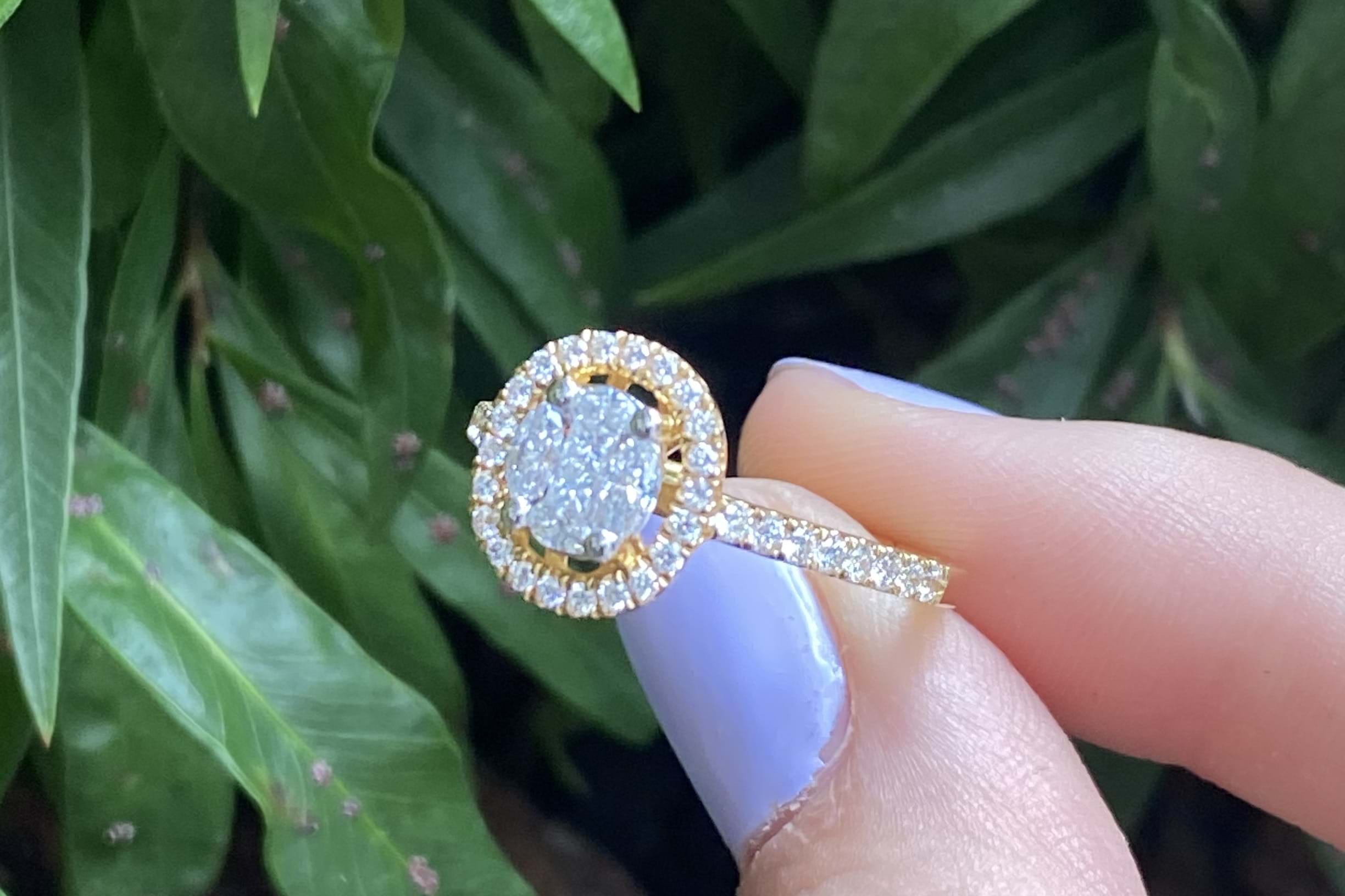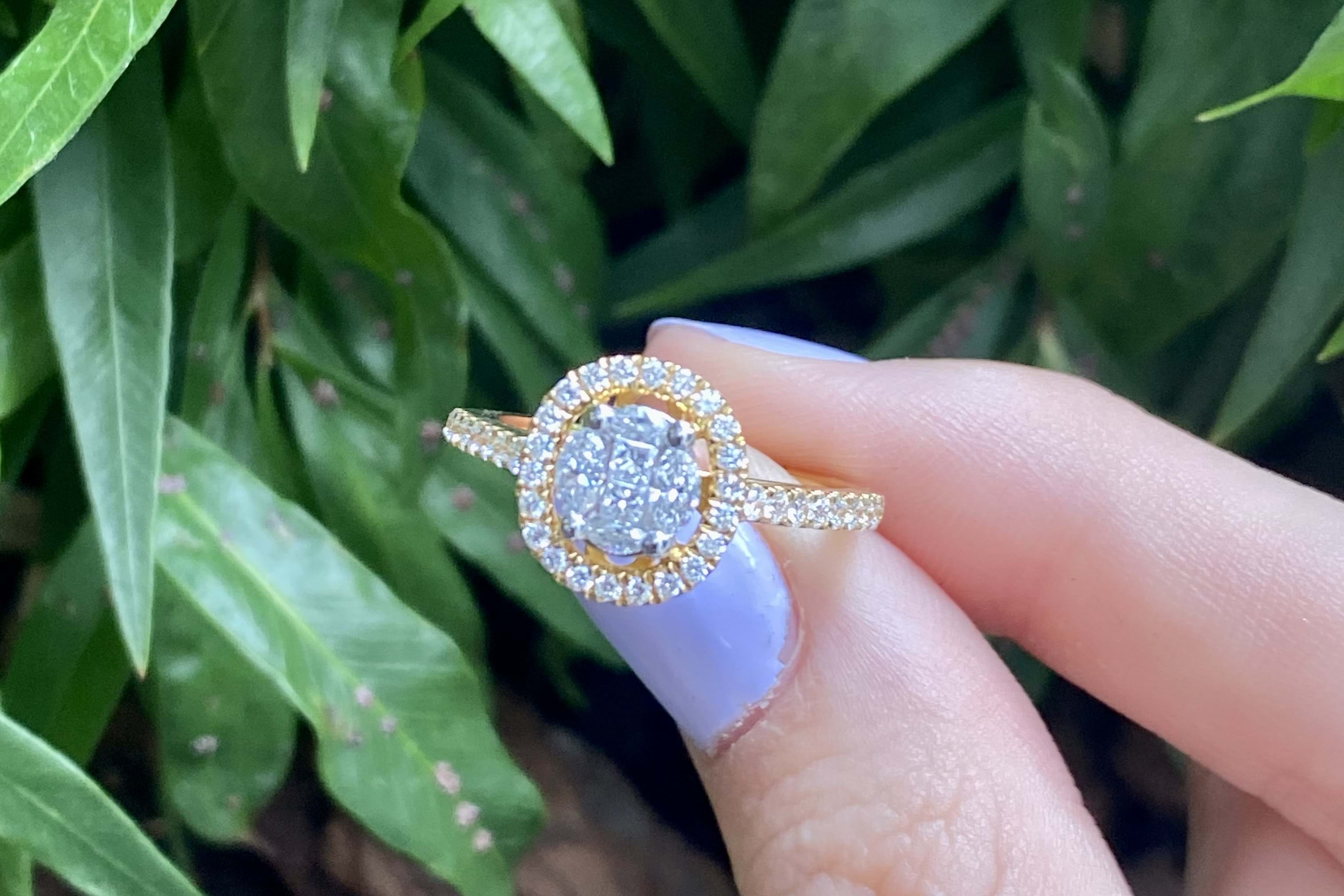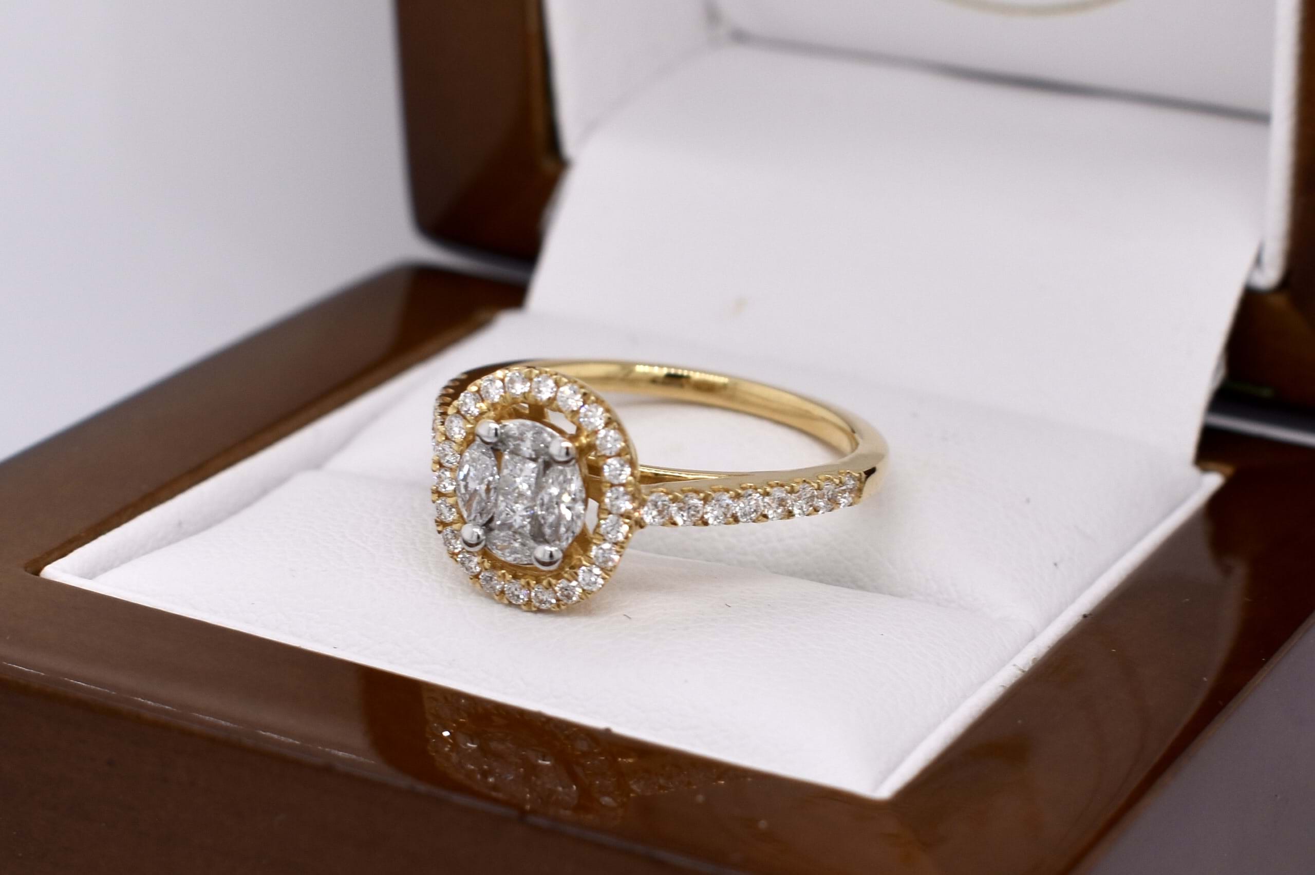 SOLD 18ct Yellow Gold 0.68ct Diamond Round Illusion & Halo Ring