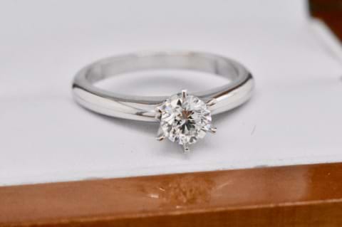 This exceptional quality diamond is an E colour and VS2 clarity. Set into a classic "tiffany"style 18ct white gold ring this 0.38ct Diamond is perfect for the girl who appreciates quality over size. Finger size H+. Independent Valuation Supplied
