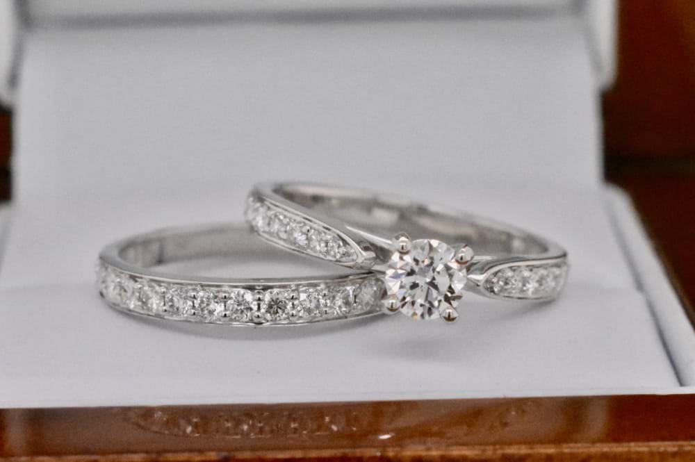 SOLD 18ct 0.40ct GIA Diamond Solitaire with shoulders Bridal set