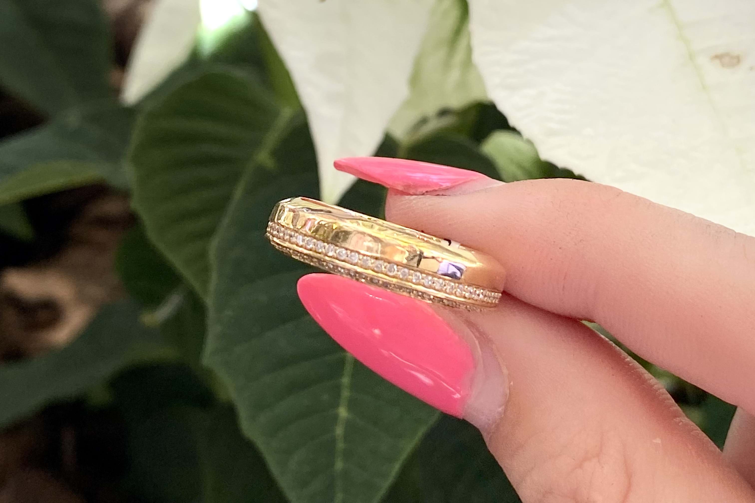 SOLD 18ct Yellow Gold 0.37ct Diamond Two Row Bevelled Edge Band (M+)