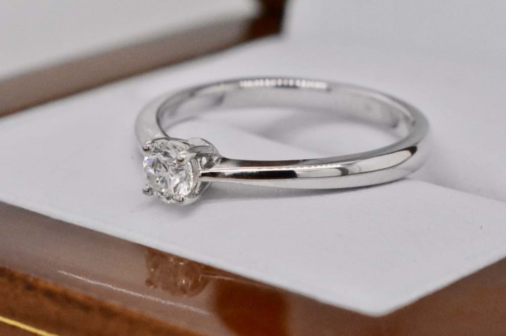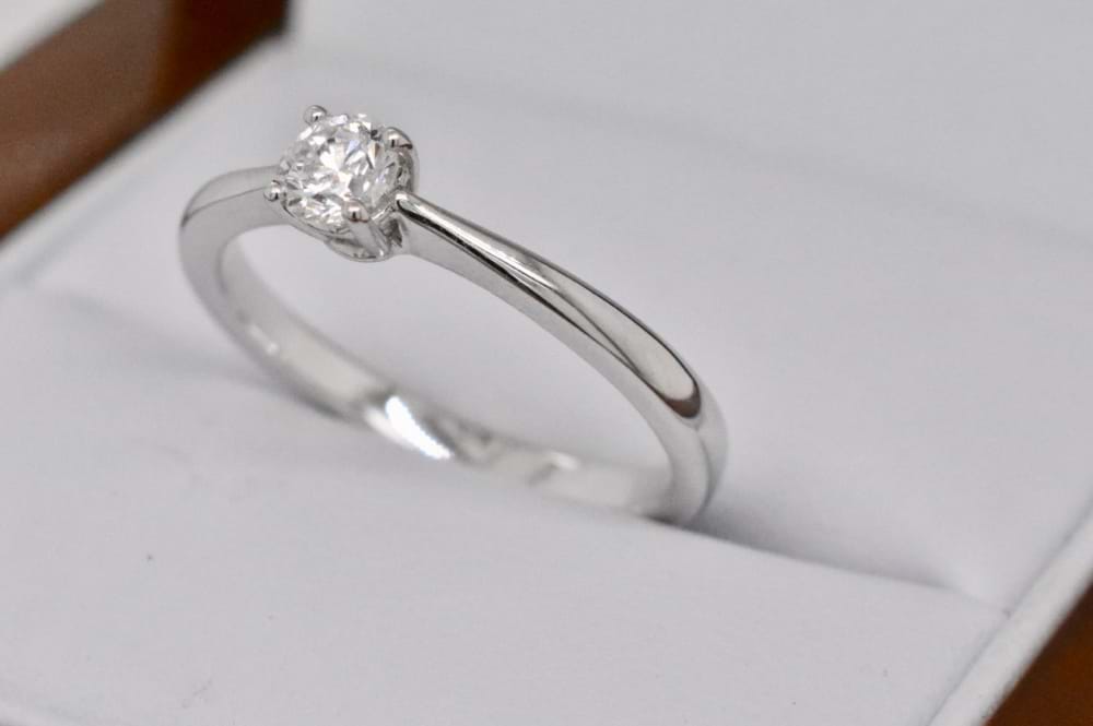 This 0.29ct (G/SI) round brilliant cut diamond has been set into a simple four claw setting, showing its' sparkle off to its full potential. The ring is 18ct white gold and makes a great engagement or dress ring. Independent Valuation Supplied
