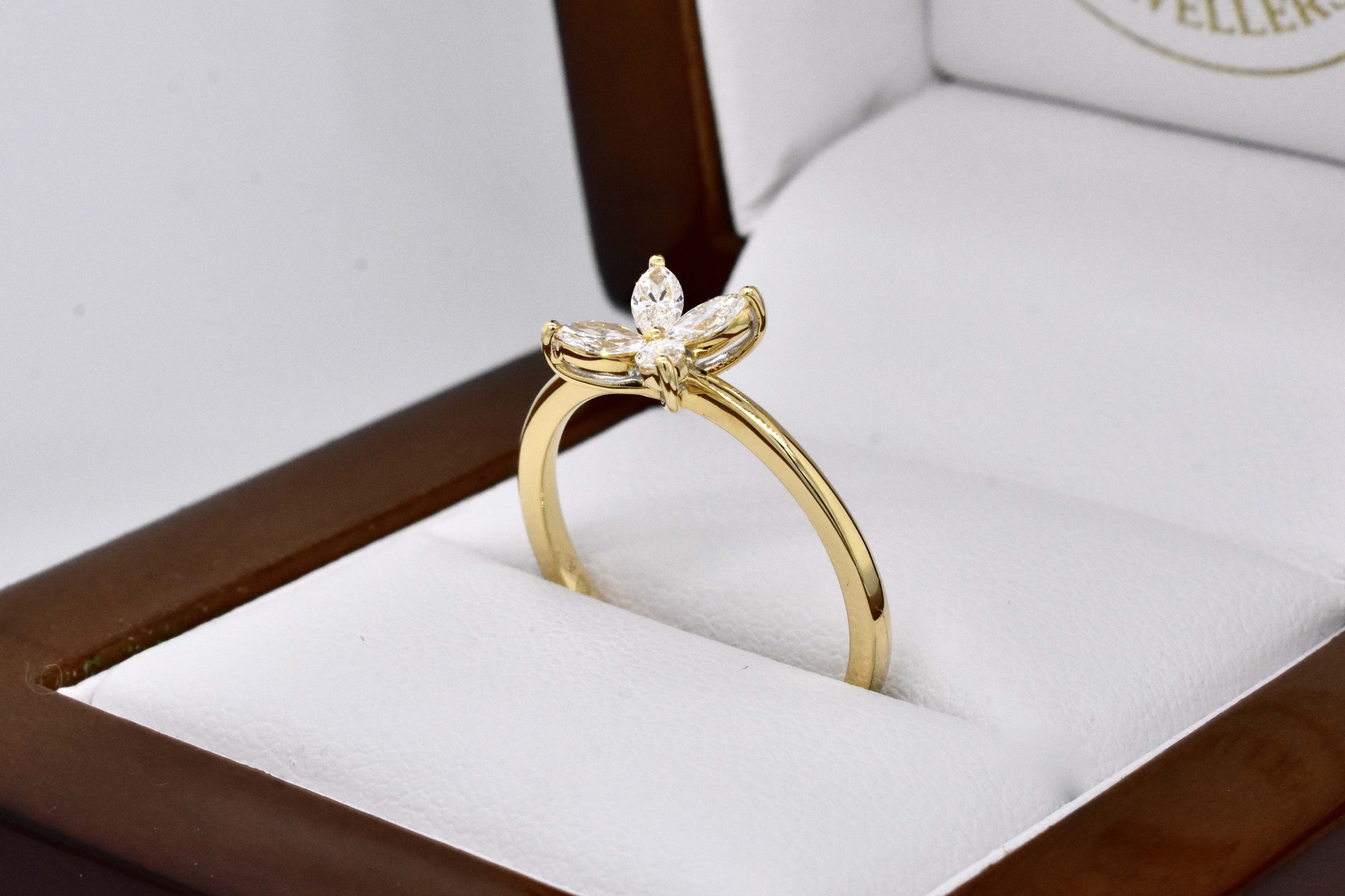 SOLD 18ct Yellow Gold 0.34ct Marquise Diamond Butterfly Design Ring (M+)