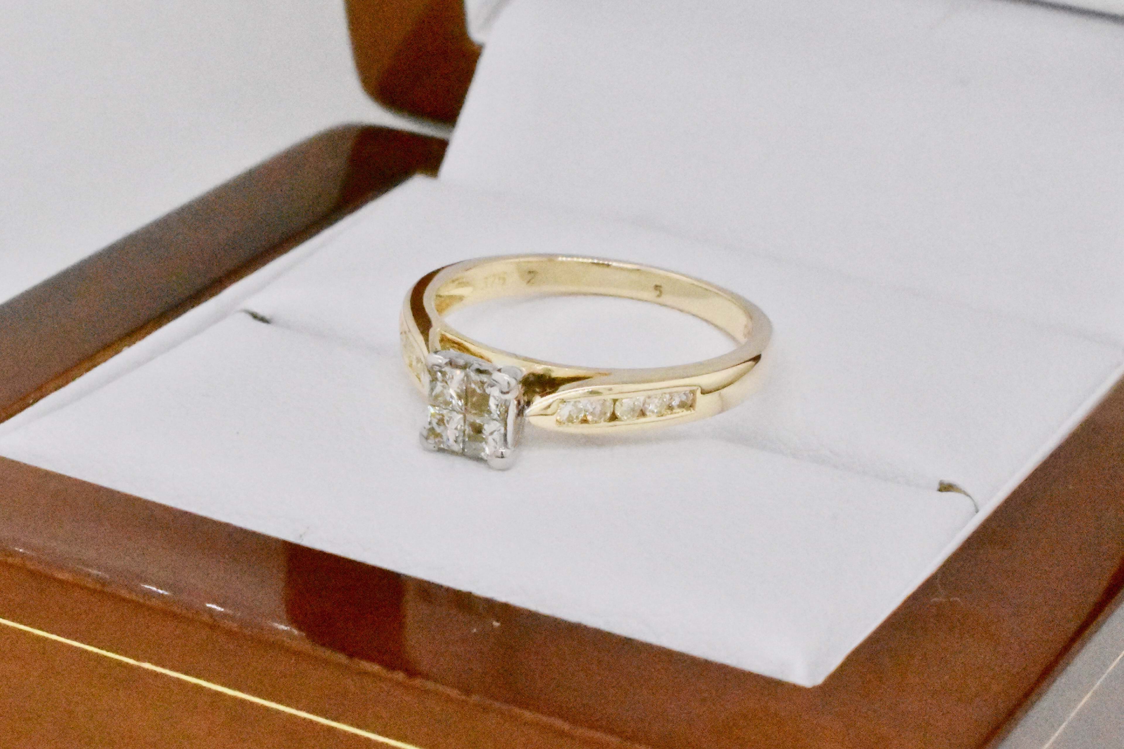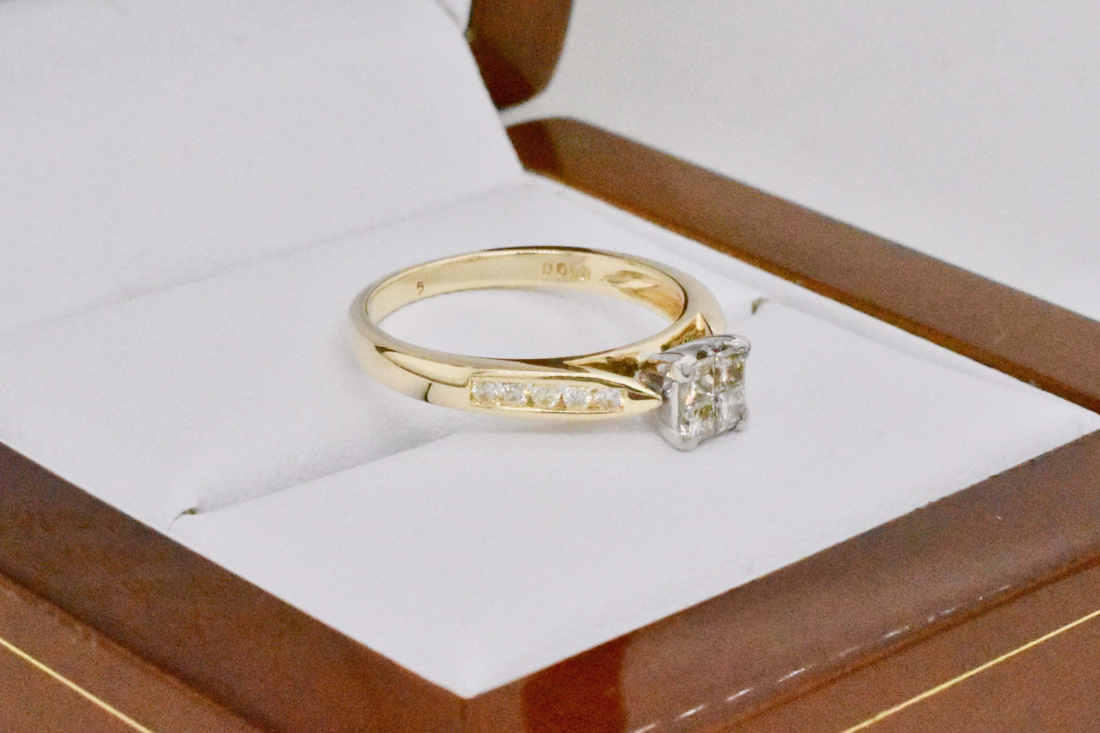 SOLD Secondhand Bargain! 9ct Yellow Gold Princess Cut Diamond Illusion Ring